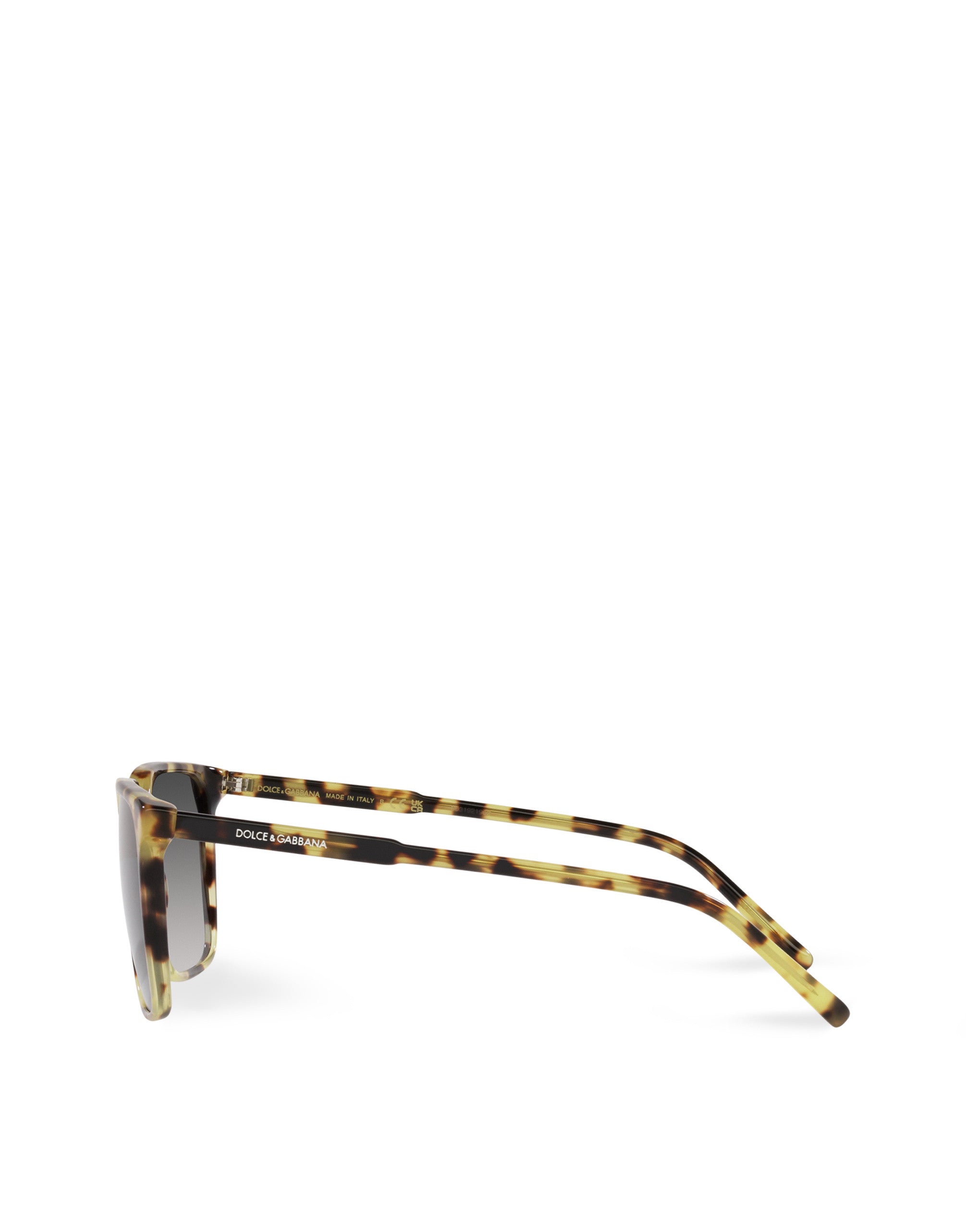 Modern and contemporary style characterized by thin profile • Yellow havana acetate frame • Yellow havana acetate temples • Light grey gradient black lenses • 100% UV protection • Size lens - bridge - temple: 56 - 19 - 145 mm • Fitting: Universal • Packaging: Institutional • Made in Italy