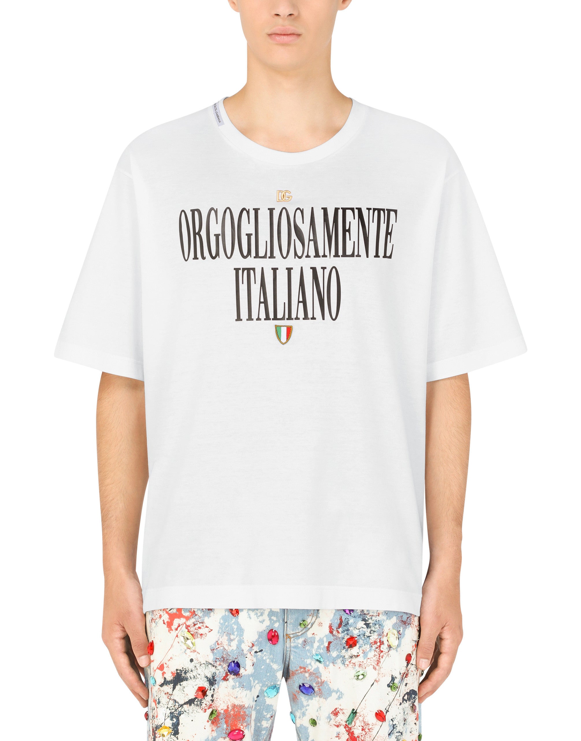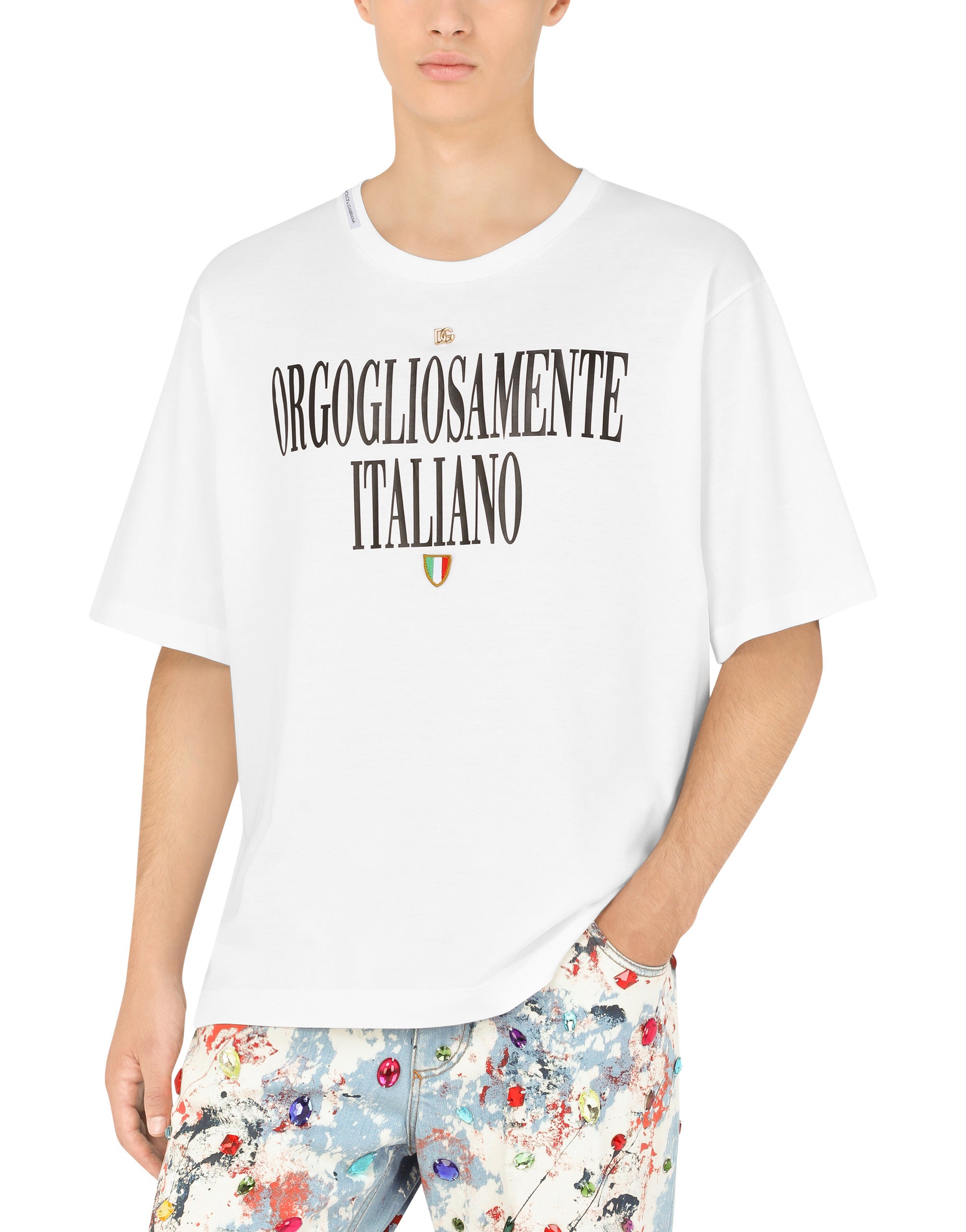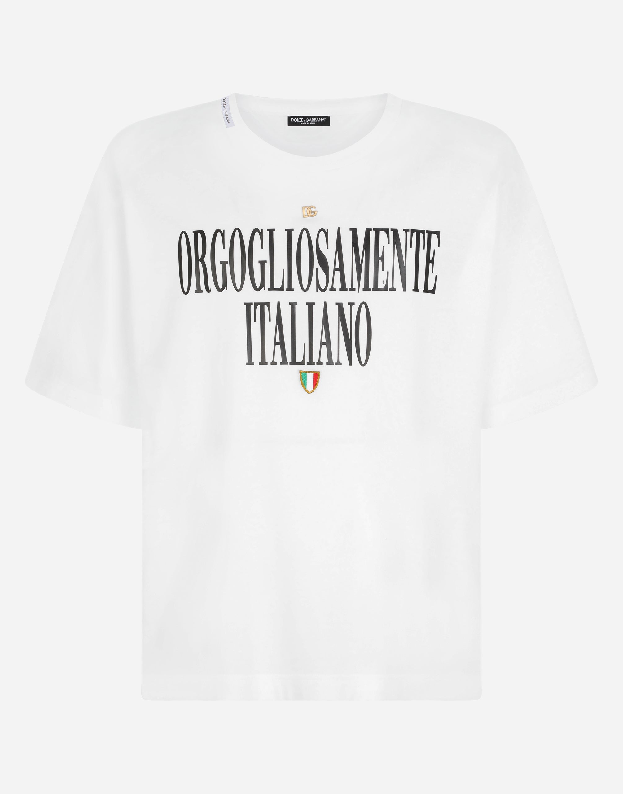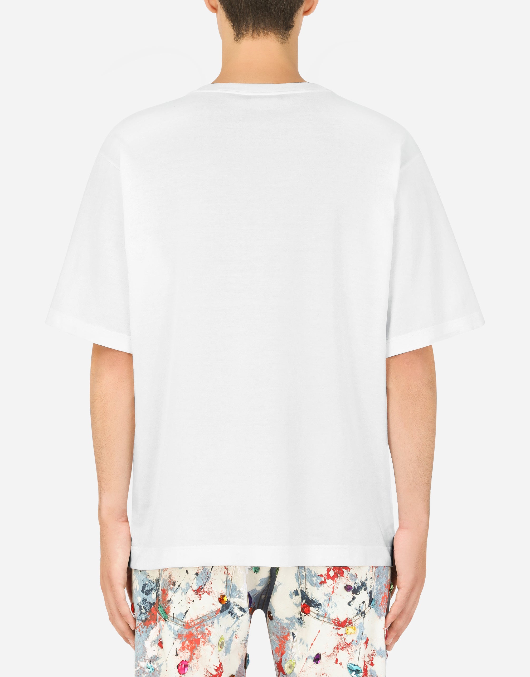 The “DG Light Therapy” fashion show is a tribute to life itself, positivity and folklore. Distinctive luminaries become wonderful photographic prints to create special, iconic pieces when combined with embroidery, crystals, sequins and jacquard designs. Cotton jersey T-shirt with print, Italy patch and metal DG logo. • Regular fit • Round neck • Short sleeves • The piece measures 71.5 cm - 28.1 inches from the rear collar seam on a size IT 48 • The model is 185 cm - 72.8 inches tall and wears a size IT 48 • Made in Italy
