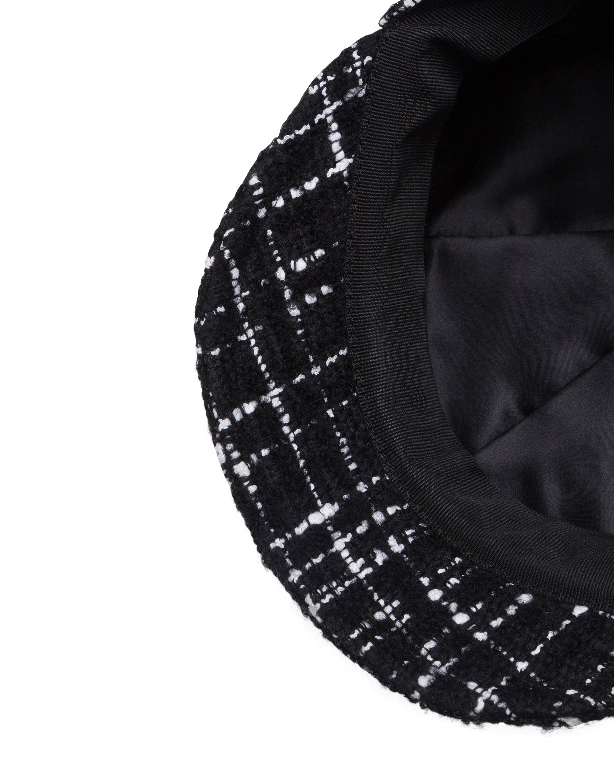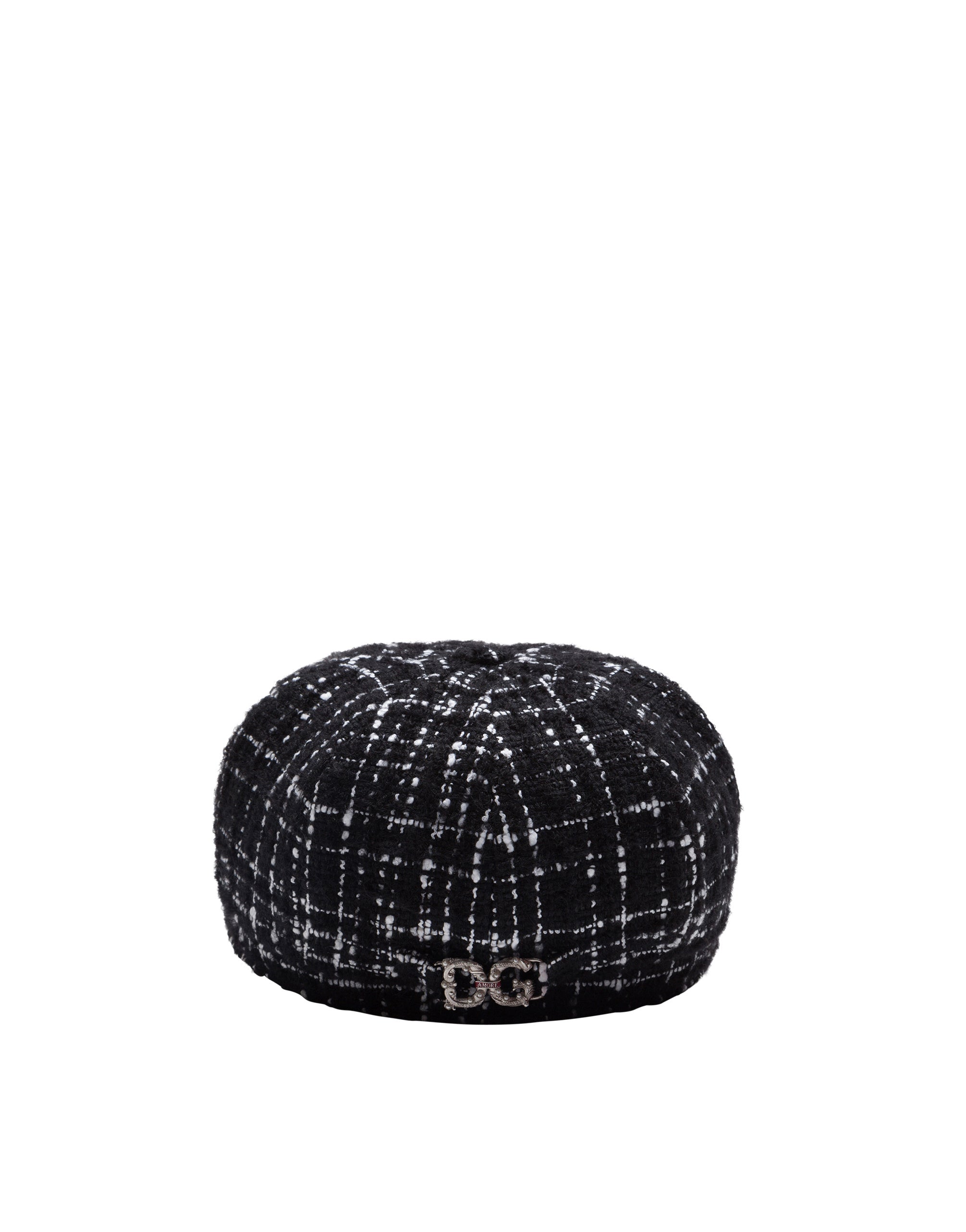 This hat takes us back to London during the Swinging Sixties. With its retro accent, it is sure to be the glam touch that you add to your looks: • Rigid peak • Inner gros-grain trim • Stretch silk satin lining • Branded metal DG detail • Made in Italy External composition: 41% Cotton 21% Acrylic 12% Polyester 7% alpaca 7% Mohair 6% Polyamide 6% Wool Internal composition: 100% Silk