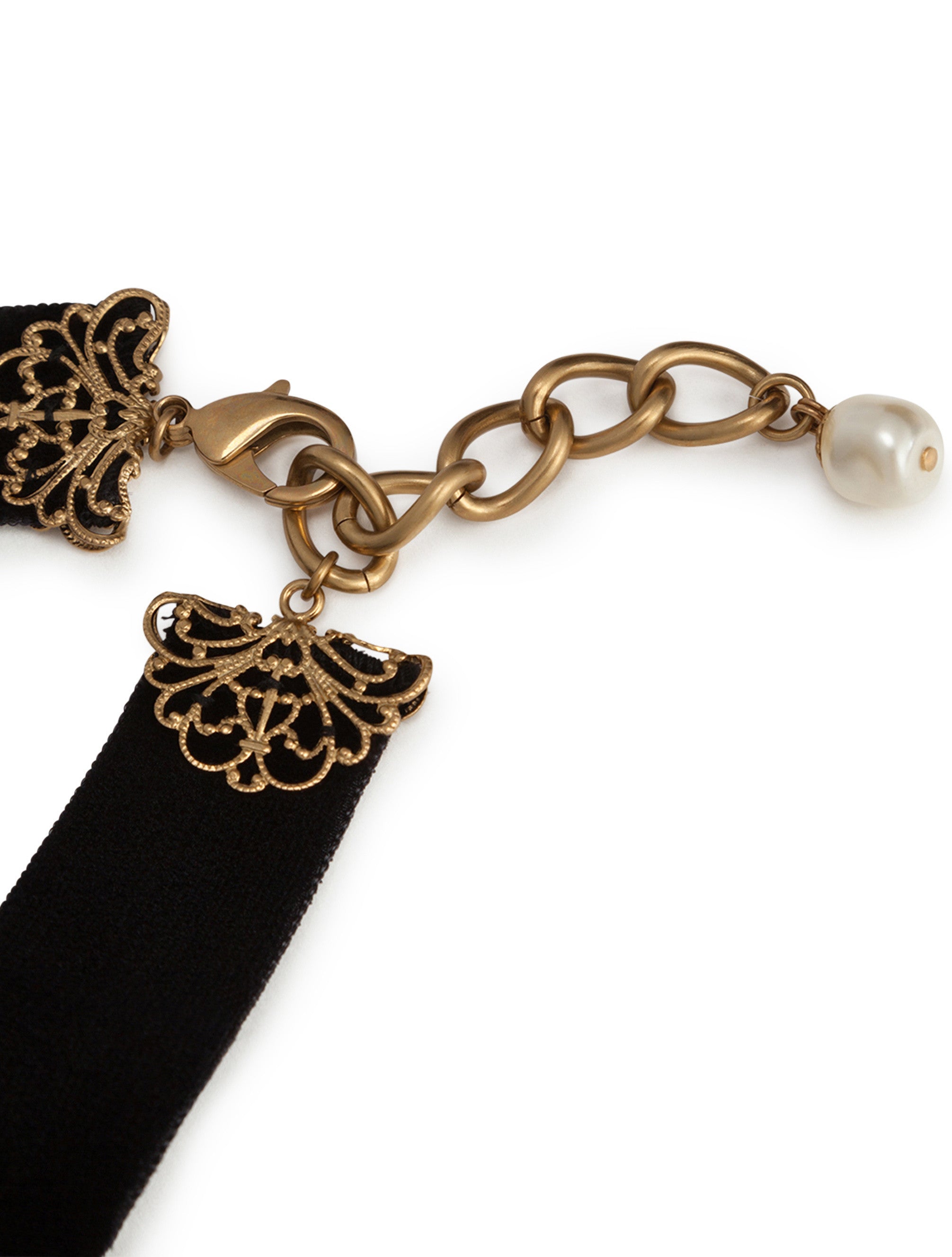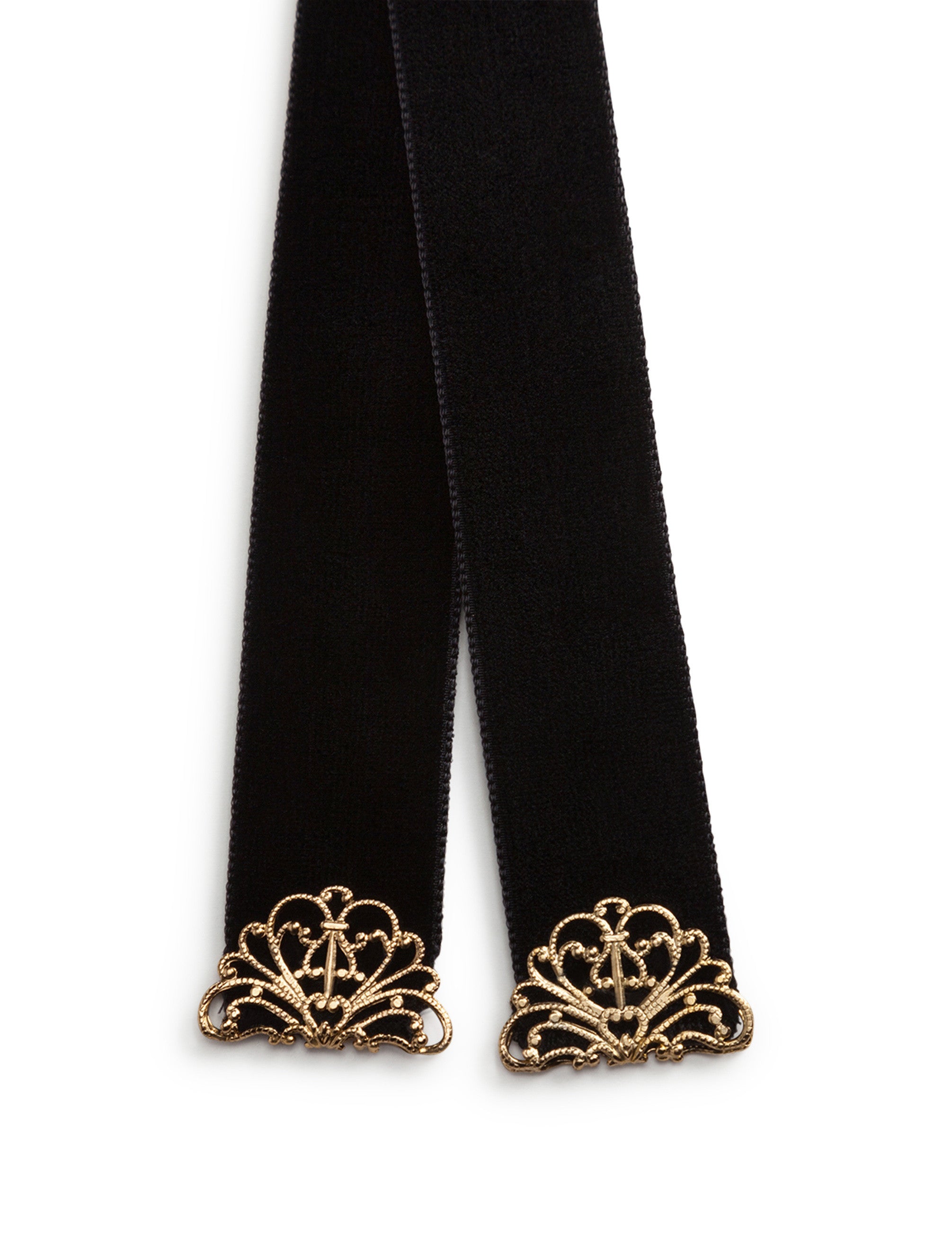 The long and thin shape of this velvet cravat will make your complete tuxedo look admirable for an unforgettable look with unique and original style: • Closure with snap hook • Non-allergenic and nickel-free materials • Made in Italy Composition: 90% Nylon 8% Brass 2% Crystal