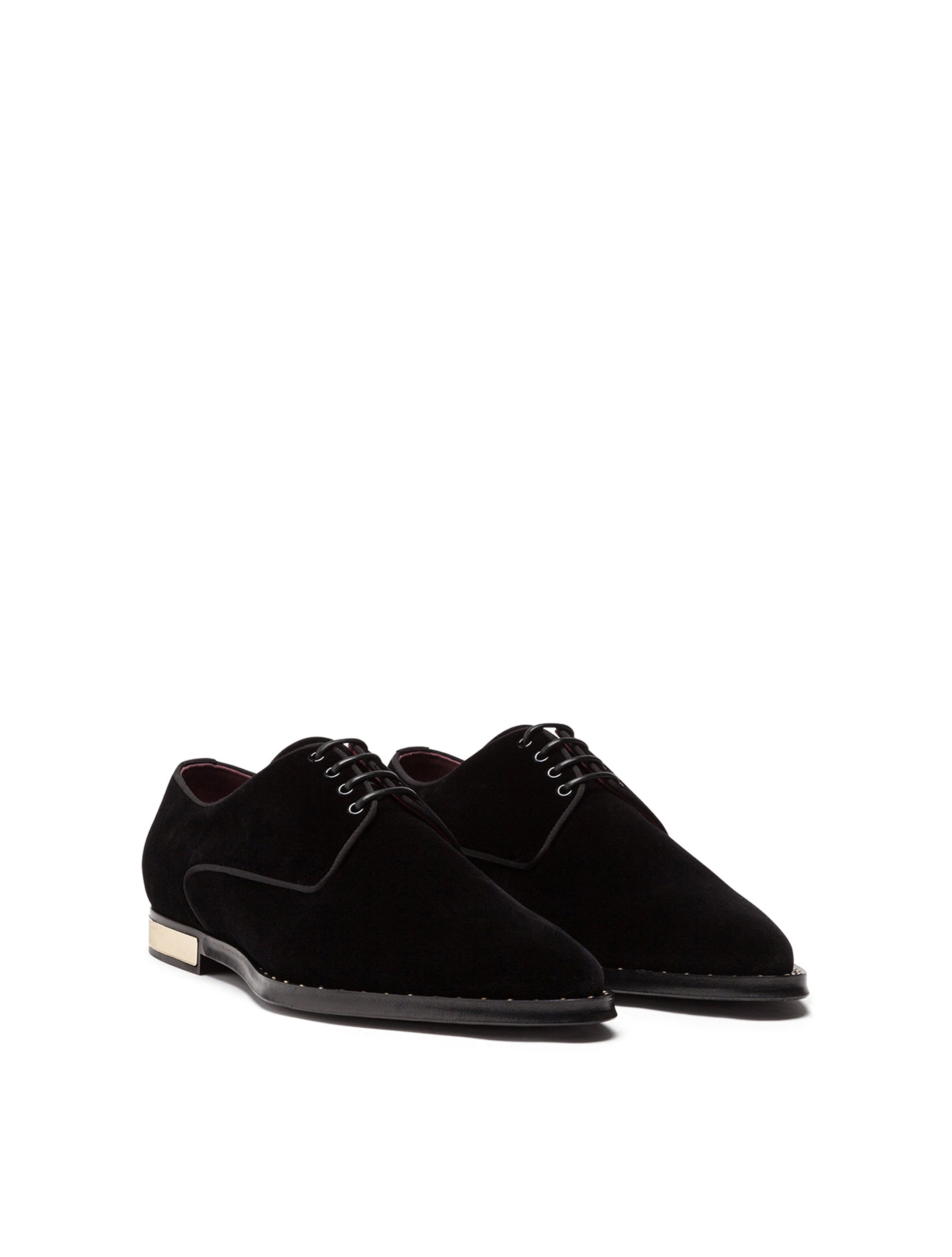 The Derby from the Millennials line is made from velvet with gros grain hemming. Characterized by its iconic tapered shape, it presents the new exclusive metal detail lasered onto the heel: • Blake Construction • Velvet upper • Waxed laces • Leather insole with matelassé satin insert and logoed label • Leather wrapped heel with metal insert and back DG logo • Leather sole with grooved detailing • Two-tone leather sole with heat-stamped logo and microinjected rubber monogram • Made in Italy External Composition: 100% Cotton Internal Composition: 95% Goatskin 3% Rayon 2% Silk