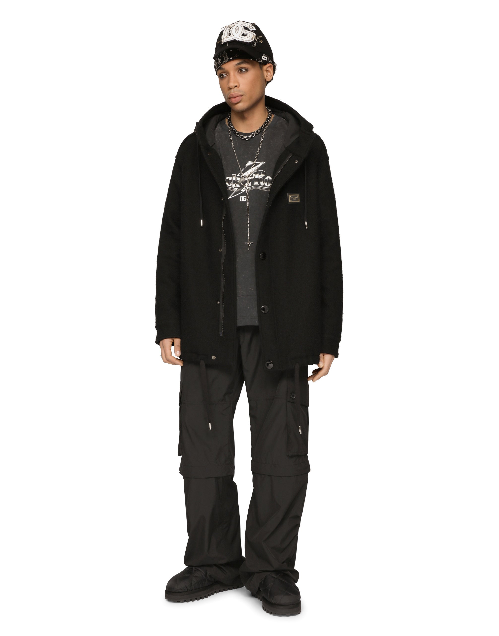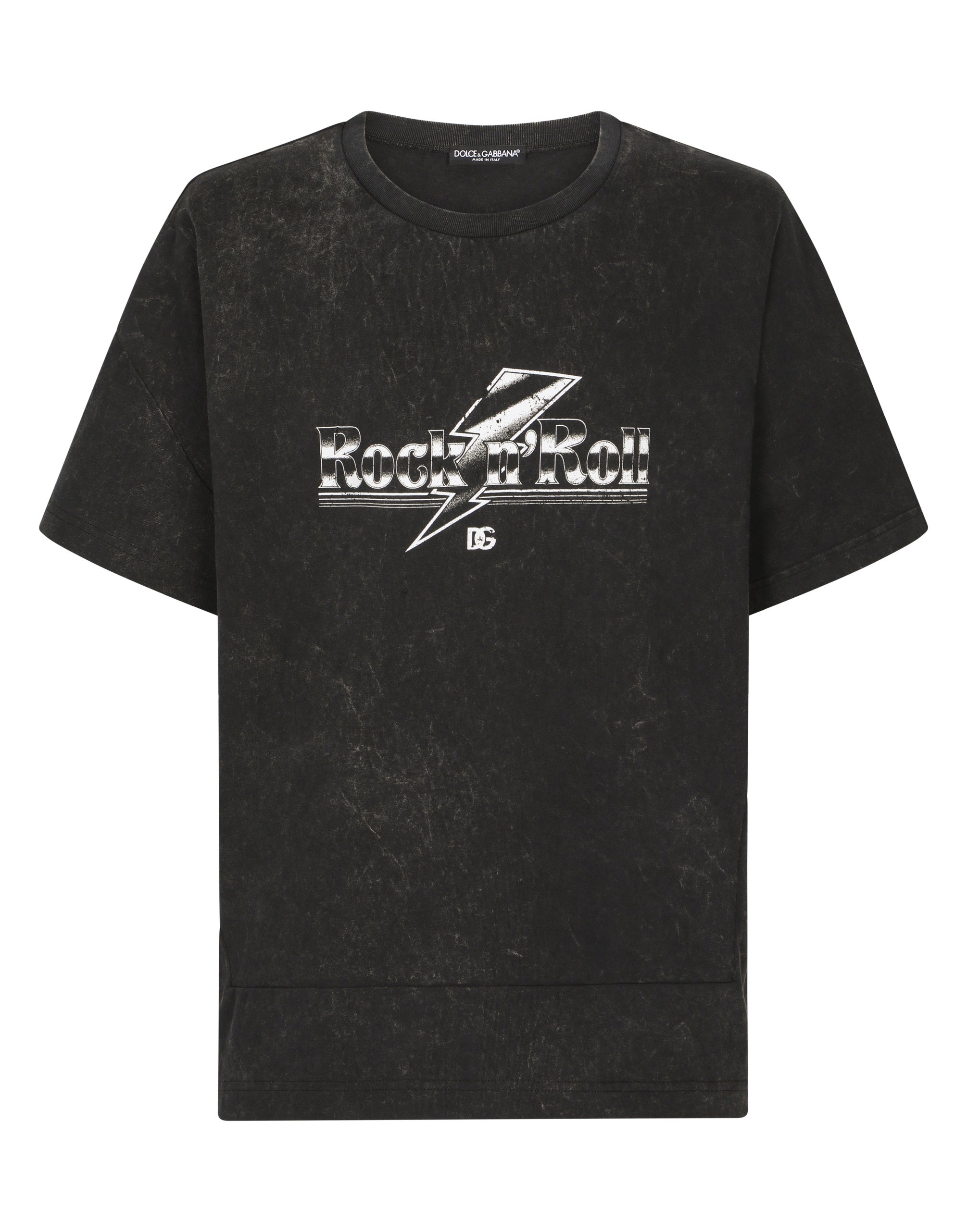 The “Dark Side” Collection is inspired by the Punk Rock movement that was on the rise in England and the United States in the mid-70s. Looking at Punk, Dolce&Gabbana is paying tribute to the legends of entire generations, celebrating uniqueness, individuality and provocation by making men free to express themselves with the language of today. Cotton jersey T-shirt with print. • Loose regular fit • Round neck • Short sleeves • The piece measures 71.5 cm from the rear collar seam on a size IT 48 • The model is 185 cm tall and wears a size IT 48 • Made in Italy