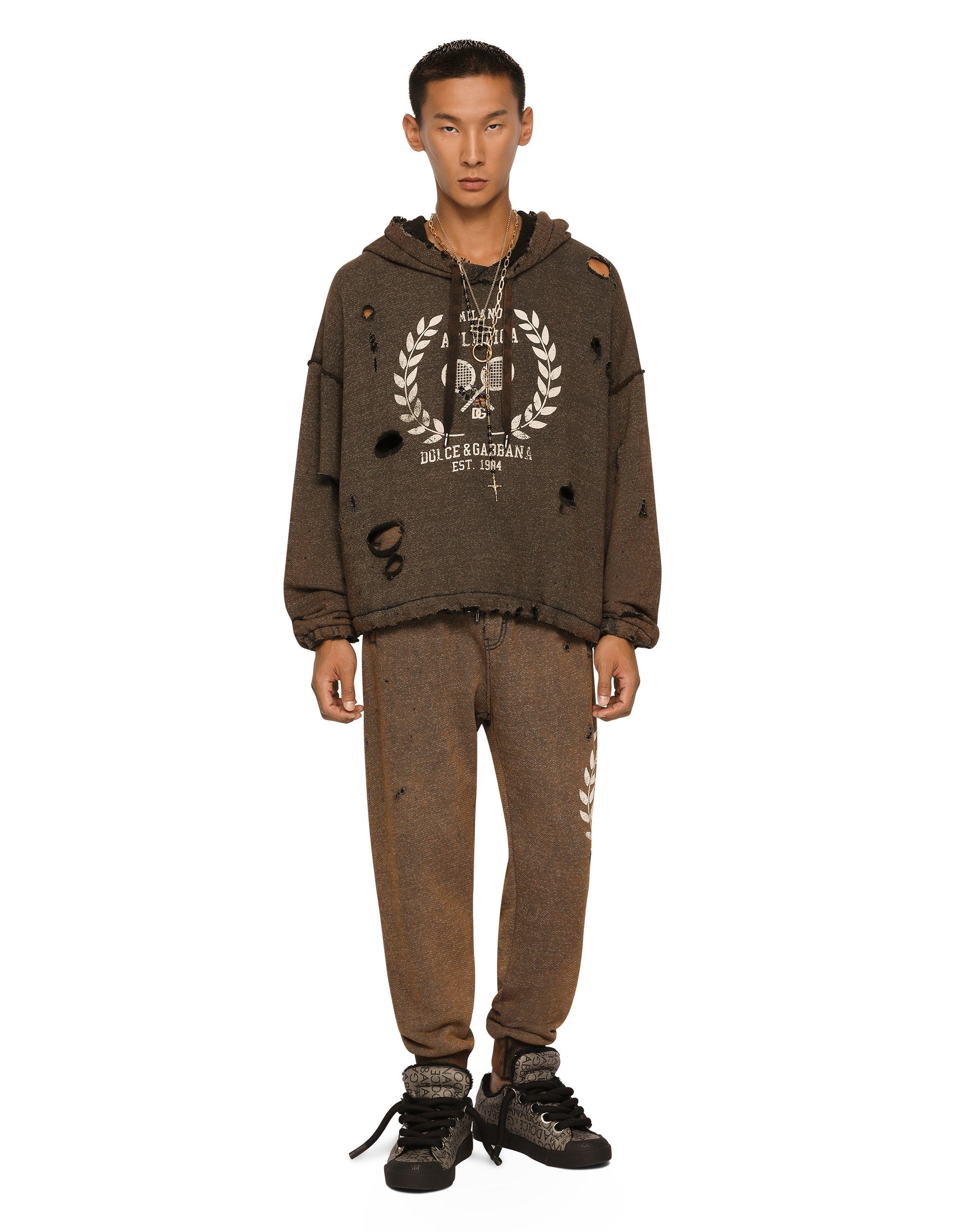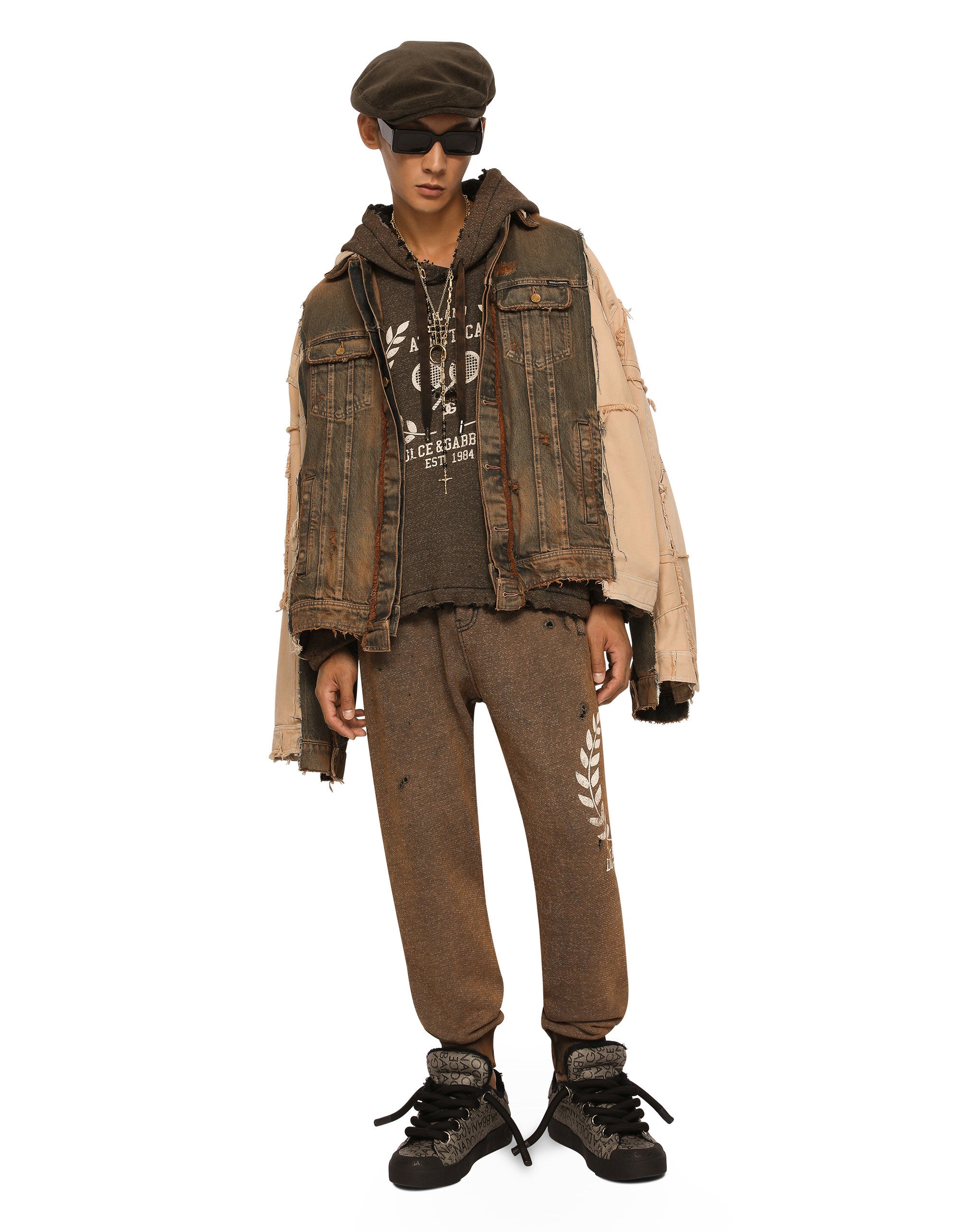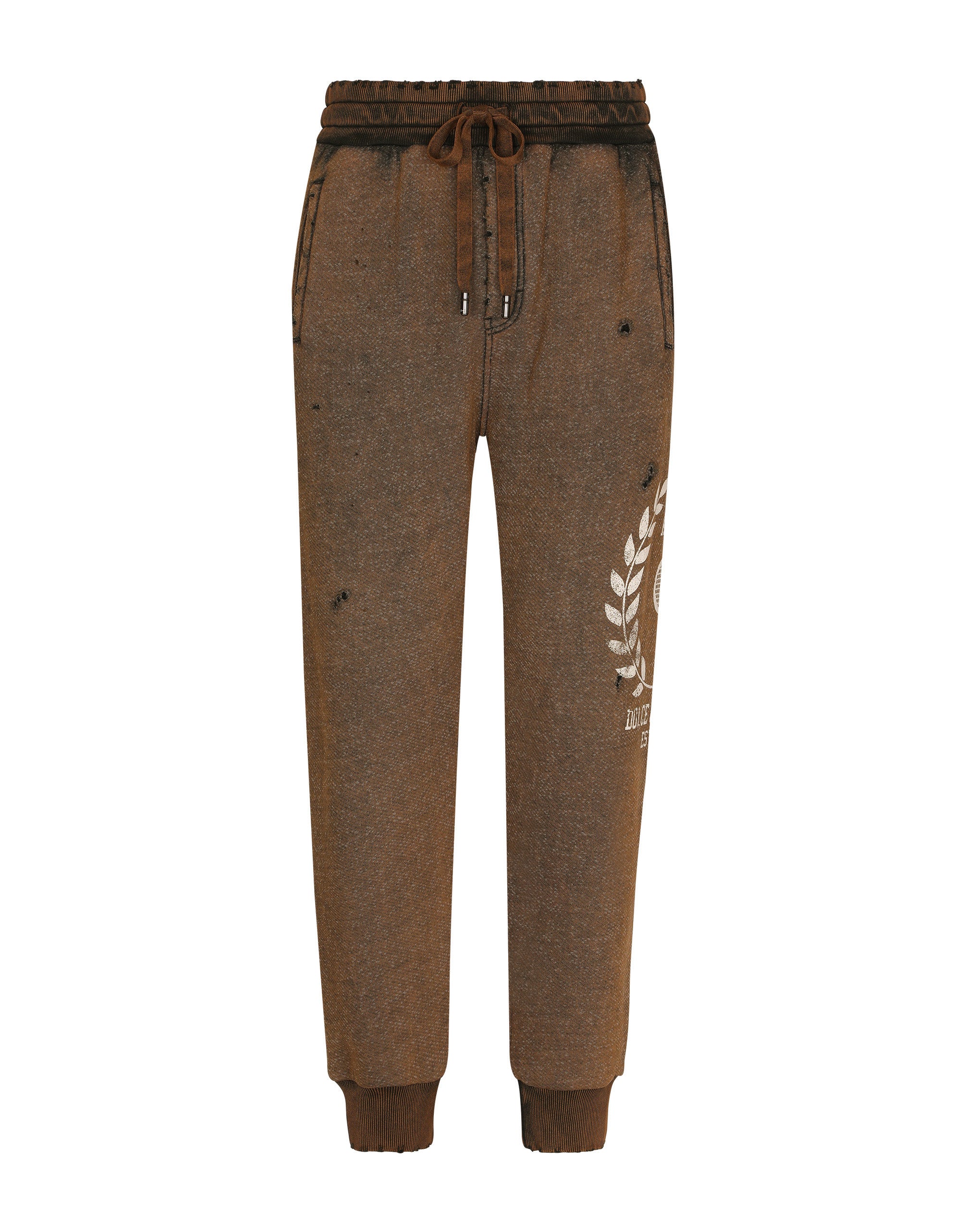 In the “Re-Edition” Fashion Show, the timeless looks from Dolce&Gabbana’s archives were back on the catwalk to create a “re-edited” collection, where the concept of contemporaneity starts from a past that is still a present filled with identity and uniqueness. Thus the Re-Edition label embellishes a few pieces, showing the year the archival garment that inspired it was created. Printed washed cotton jersey jogging pants: • Regular fit • Stretch waistband with drawstring and branded metal aglets • Front welt pockets and back welt pocket with zipper • Stretch ankle cuffs • The item measures 99 cm on the outer leg on a size IT 48 • The model is 185 cm tall and wears a size IT 48 • Made in Italy
