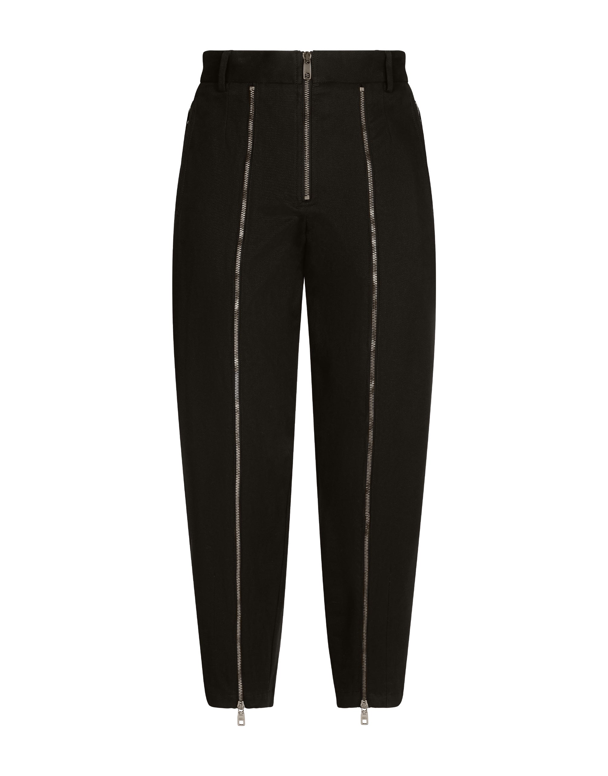 For FW23, Dolce&Gabbana rereads its own historical archive, which is an inexhaustible source of inspiration that is rich in fascination and creativity. The garments accompanied by a “Re-Edition” label report the dates referenced by the collection. Each look enhances in all its sophistication the concept of timeless relevance of a historical archive allowing new generations to discover a past but always current universe that is rich in creative insights and possible personal interpretations. Sporty washed stretch cotton gabardine pants with the Re-Edition label: • Brown • Regular fit • Belt loops on the waist • Zipper and button fastening • Zipped welt pockets on the front and flap back pockets • Zipper with bellow on the front leg • The item measures 99 cm on the outer leg and the hem is 18 cm wide on a size IT 48 • The model is 185 cm tall and wears a size IT 48 • Made in Italy