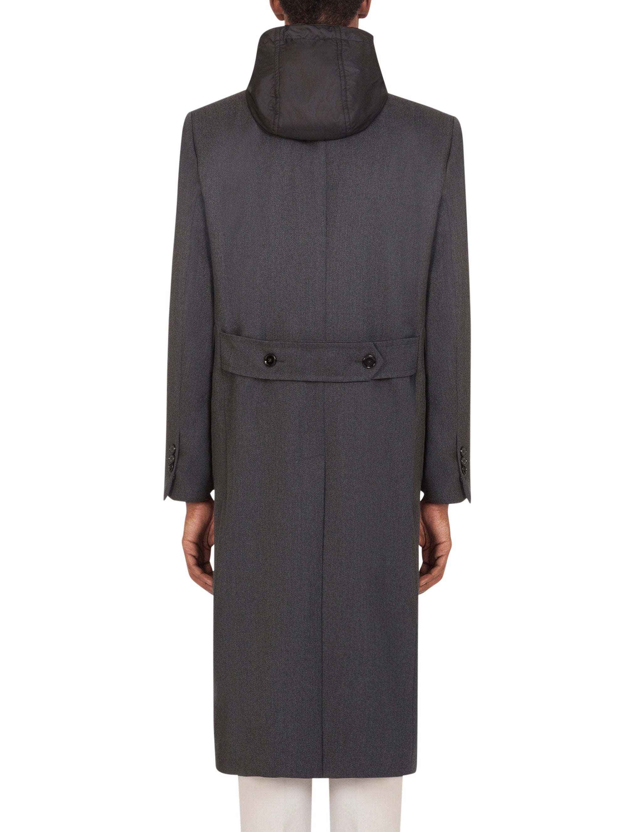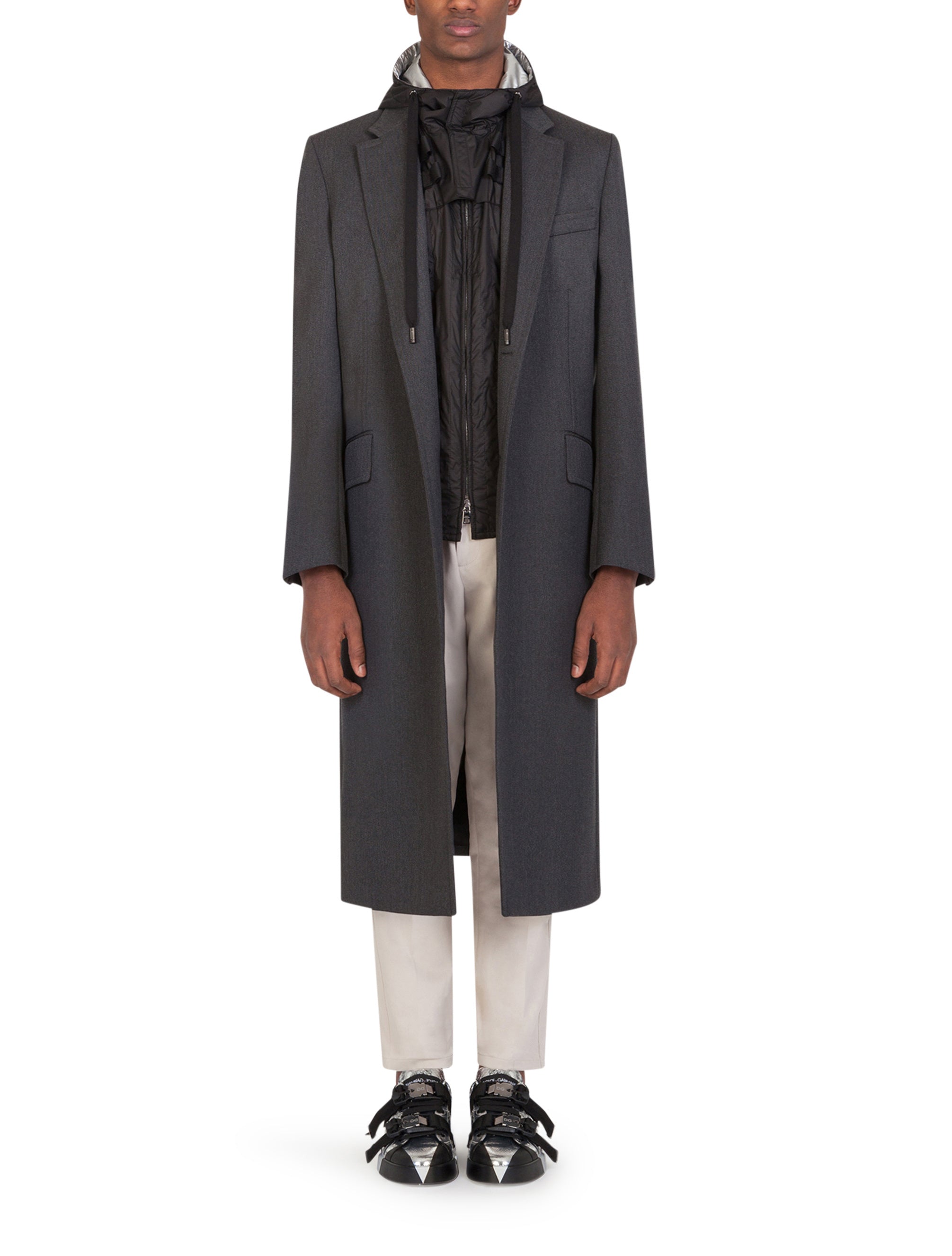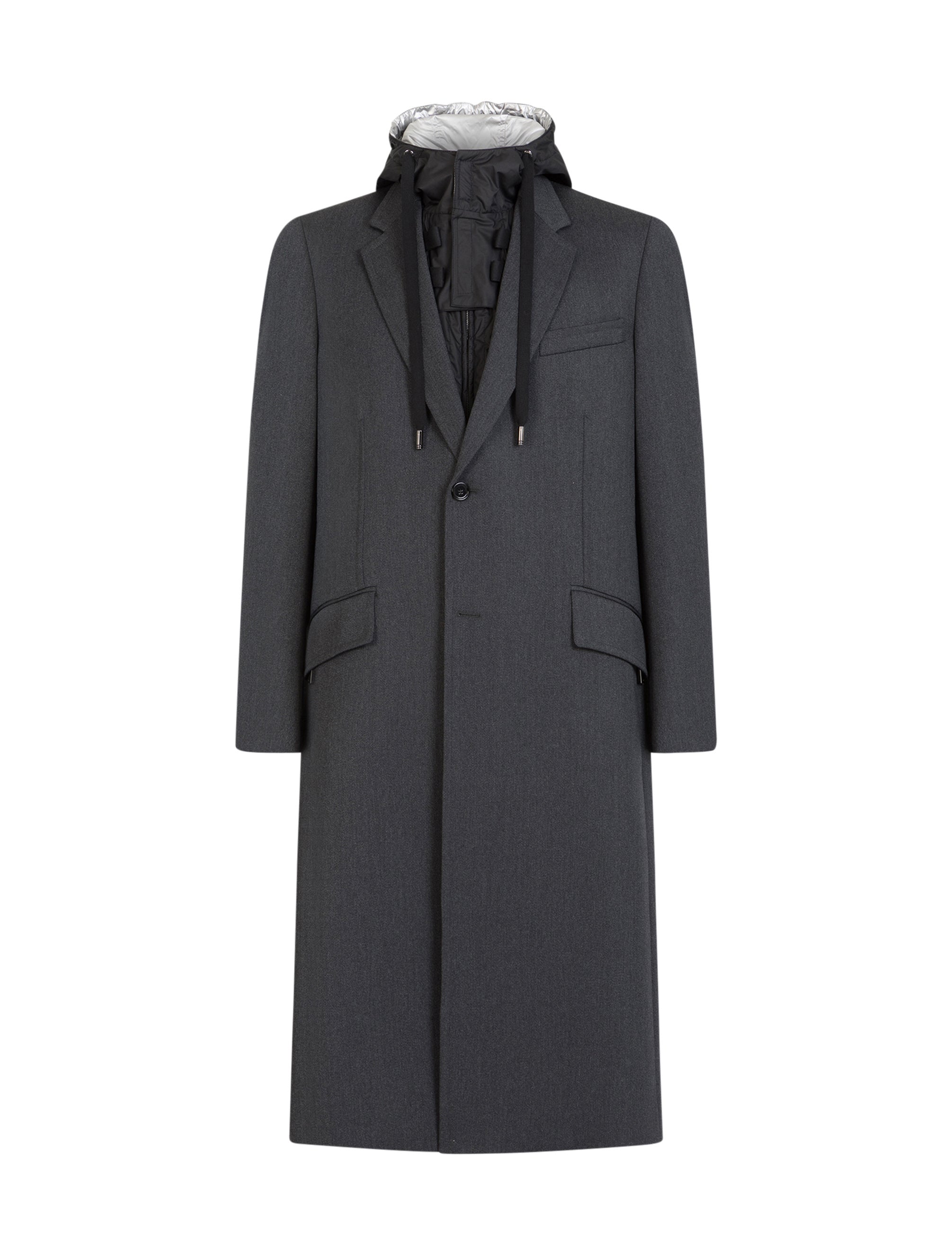 The craftsmanship, the attention to detail and the selection of superior fabrics, combined with the tailoring of the garments, form the very essence of the collection’s DNA. The new logo inspired by Dadaism mixes with the black and white prints of photos from Sicily that take us back to the origins of Dolce&Gabbana’s tradition. Versatile single-breasted wool coat with detachable inner quilted vest: • Regular fit • Mirrored lapels • Two-button fastening • Flap pockets and a breast pocket • Two buttoned inner pockets with flap and two welt pockets • Buttoned cuffs • Lined • The piece measures 98 cm - 38.6 inches from the rear collar seam on a size 48 IT • The model is 185 cm - 72.8 inches tall and wears a size IT 48 • Made in Italy External composition: 80% Wool 20% Polyester