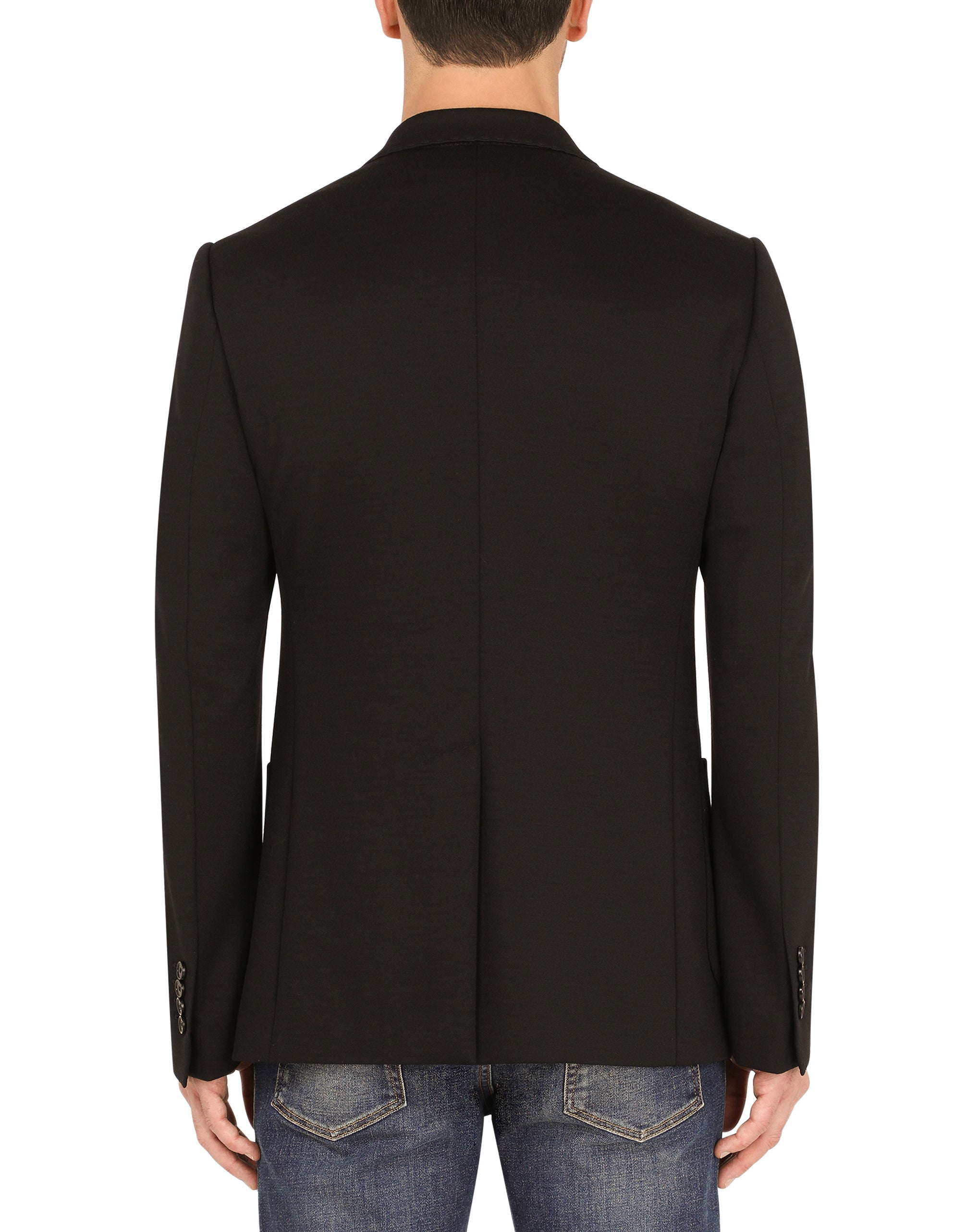 The Sartoriale Collection fuses wonderful sartorial constructions with fine fabrics. Garments embellished by embroidery, French wire patches and fine details, complemented by colorful accessories, create sophisticated and contemporary looks. Single-breasted wool jersey jacket with French wire DG logo patch. • Regular fit • Notched lapels • Double-button fastening on the front • Outer patch pockets and breast pocket • Two inner pockets with button • Buttoned cuffs • Central vent • Partially lined • The piece measures 73.5 cm - 28.9 inches from the rear collar seam on a size IT 48 • The model is 185 cm - 72.8 inches tall and wears a size IT 48 • Made in Italy