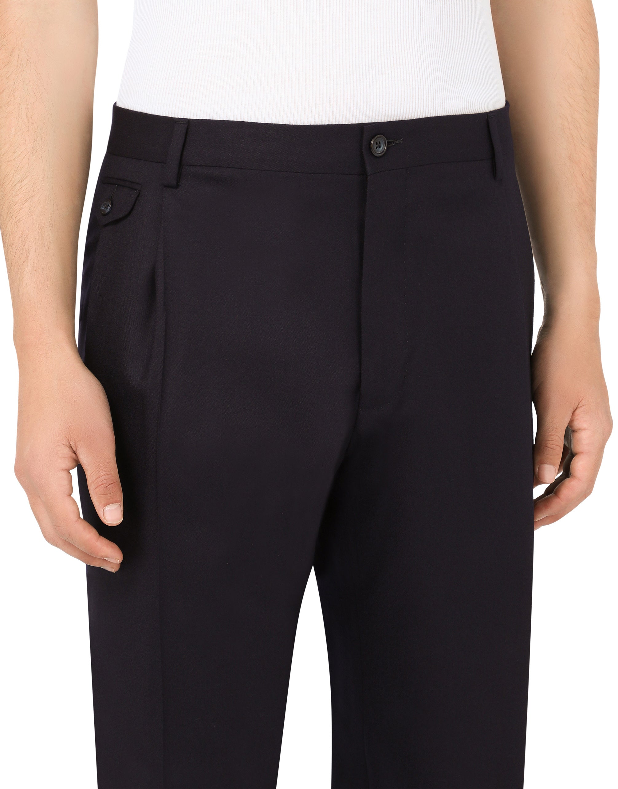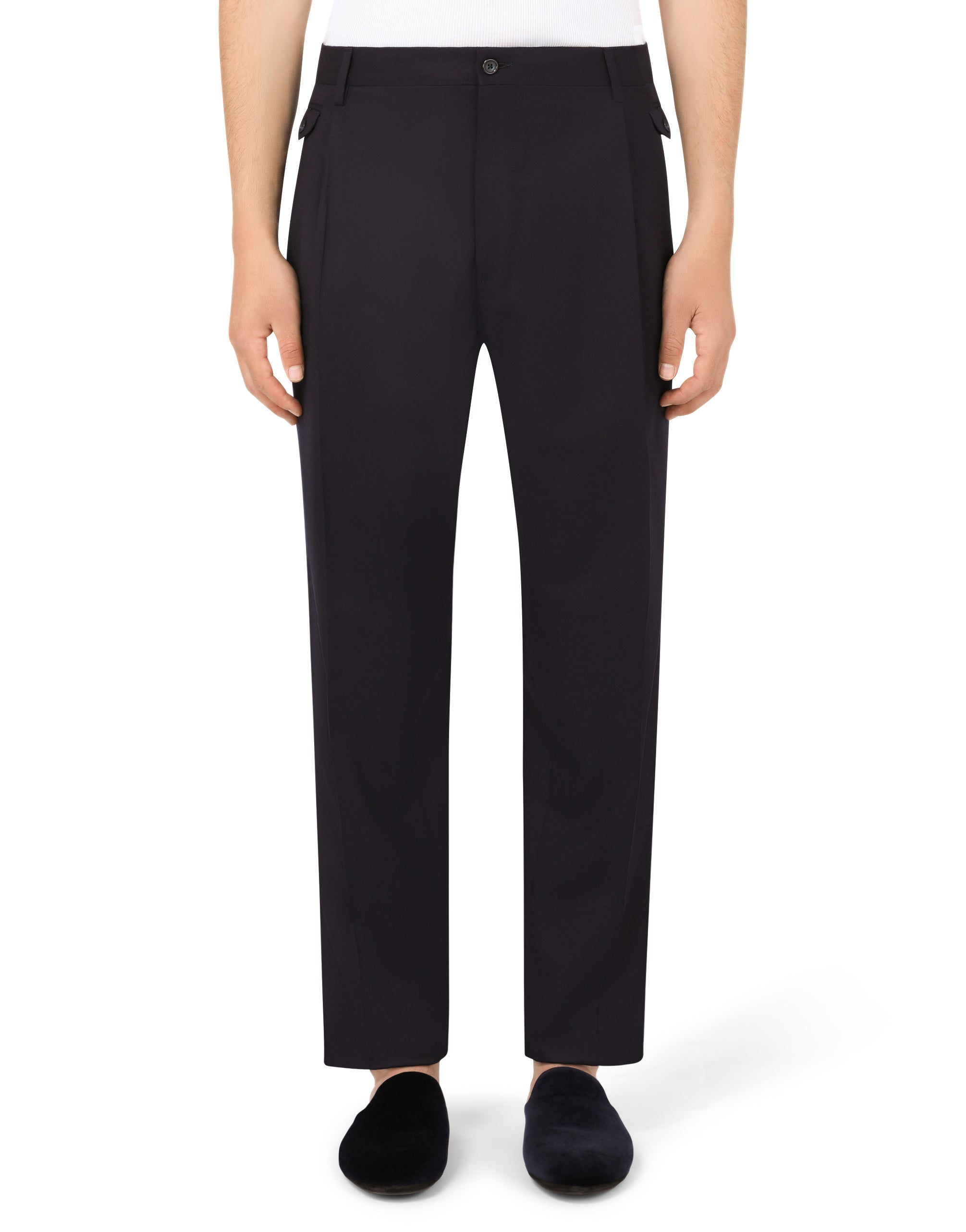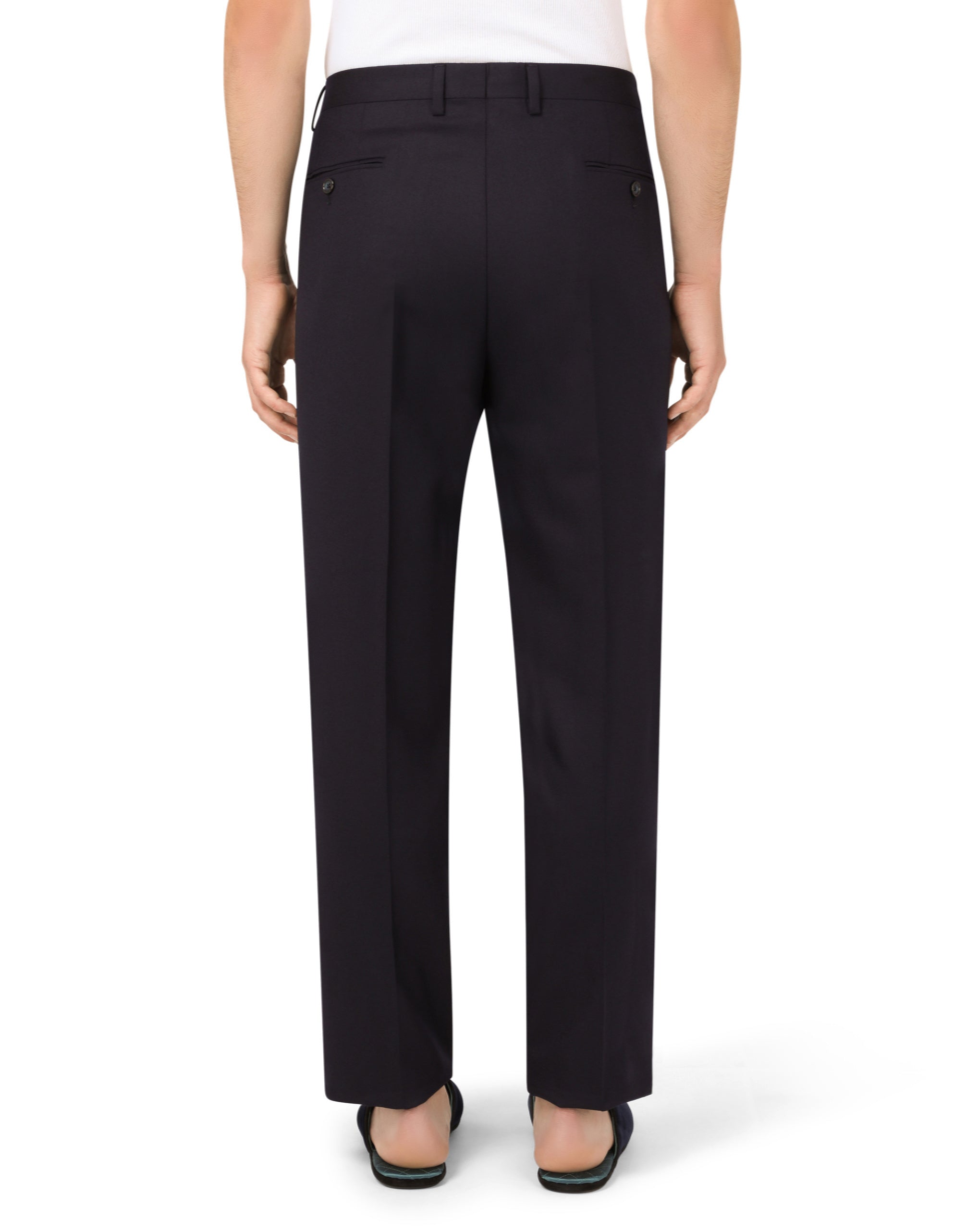 The Sartoriale Collection fuses wonderful sartorial constructions with fine fabrics. Garments embellished by embroidery, French wire patches and fine details, complemented by colorful accessories, create sophisticated and contemporary looks. Tailored wool pants. • Regular fit • Belt loops on the waist • Fly-covered zipper and button fastening • Double darts • Front slant pockets and buttoned welt pockets at the back • Coin pocket with flap and button • The hem is 18 cm - 7.1 inches wide on a size IT 48 • The item measures 99 cm - 39 inches on the outer leg on a size IT 48 • The model is 185 cm - 72.8 inches tall and wears a size IT 48 • Made in Italy