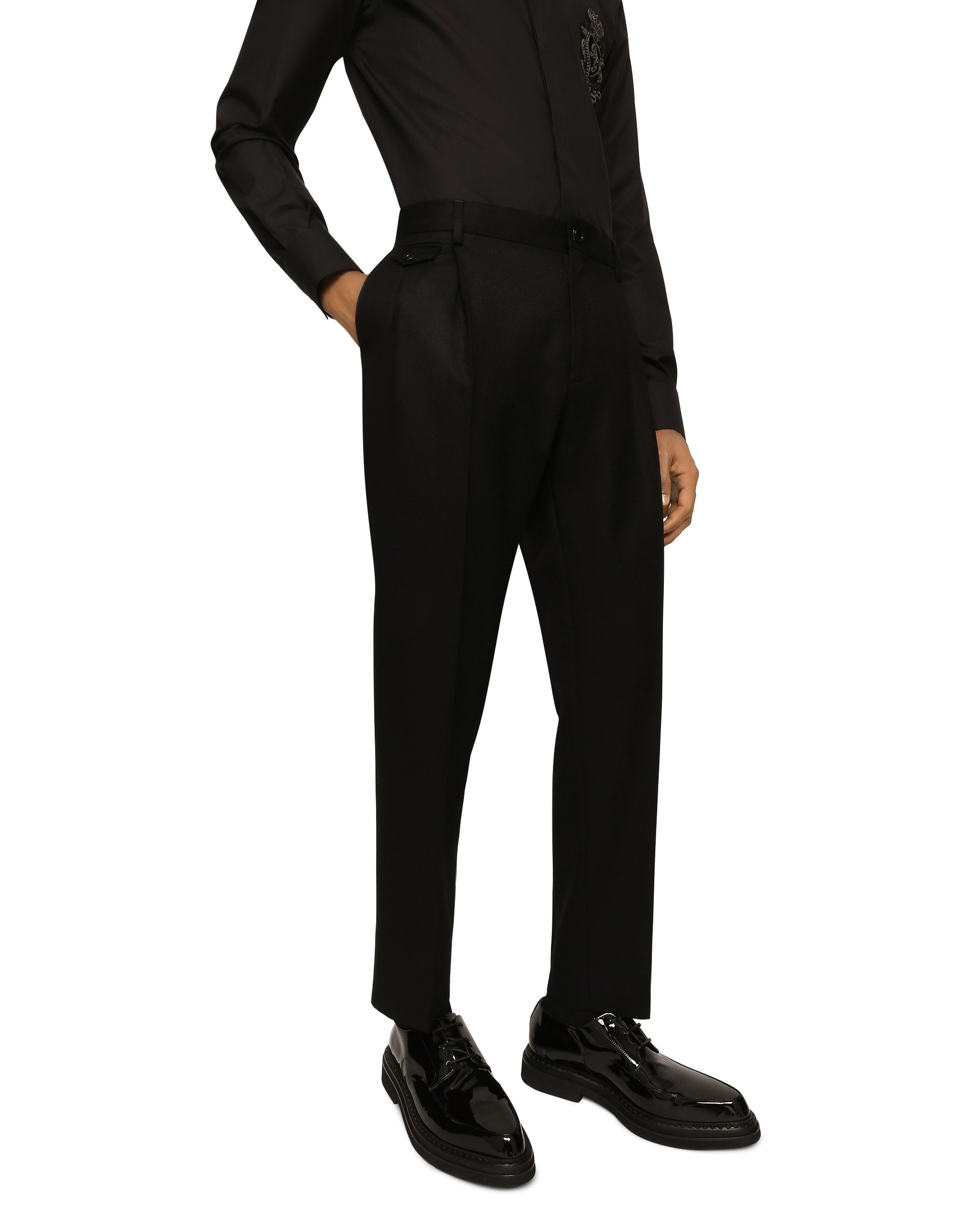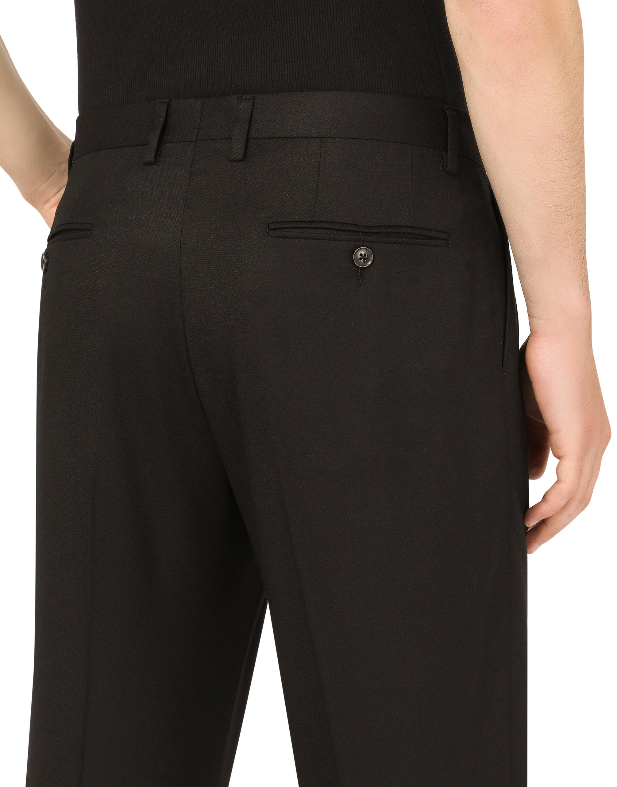 The Sartoriale Collection fuses wonderful sartorial constructions with fine fabrics. Garments embellished by embroidery, French wire patches and fine details, complemented by colorful accessories, create sophisticated and contemporary looks. Tailored wool pants. • Regular fit • Belt loops on the waist • Fly-covered zipper and button fastening • Double darts • Front slant pockets and buttoned welt pockets at the back • Coin pocket with flap and button • The hem is 18 cm - 7.1 inches wide on a size IT 48 • The item measures 99 cm - 39 inches on the outer leg on a size IT 48 • The model is 185 cm - 72.8 inches tall and wears a size IT 48 • Made in Italy