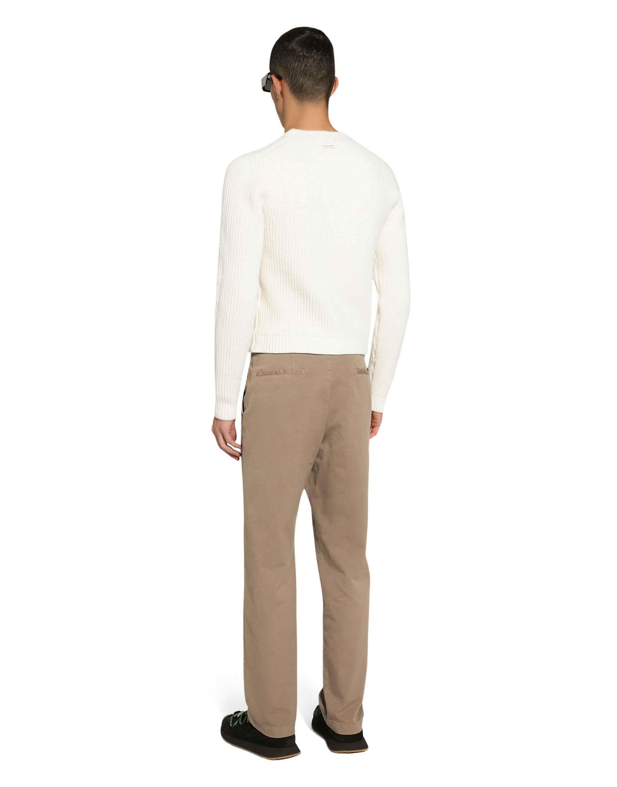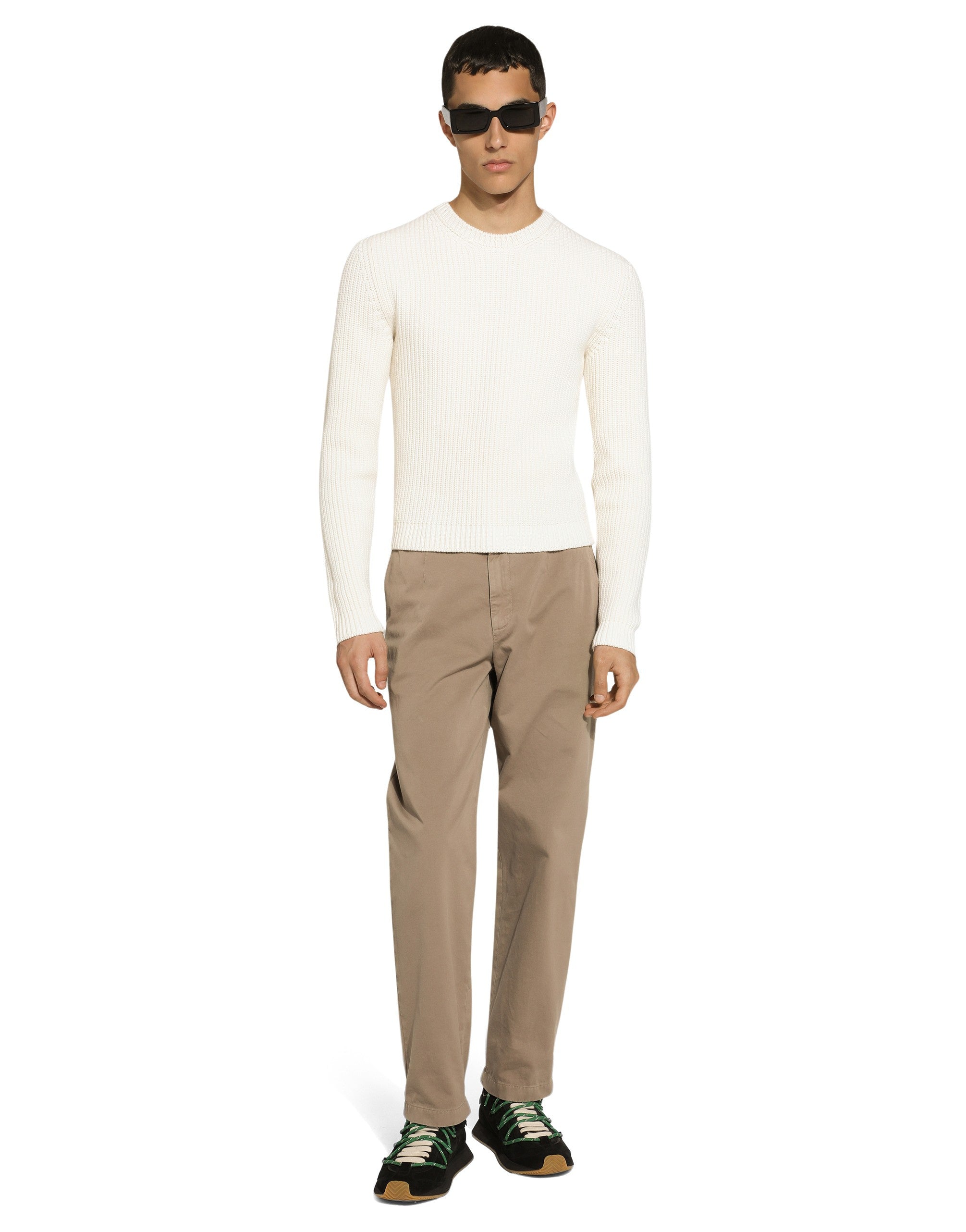 The men's FW 24-25 Re-Edition collection conveys contemporary style that flaunts all the power of the creative DNA that consolidated the brand's image and elevated it to iconic status in the 2000s. Raw-cut details and skilled finishes distinguish pieces with streetwear character: military-inspired jackets and maxi-coats, multi-pocket cargo pants and picot pieces alternate with denim boasting many washes and dyes, thereby redefining an iconic style that is always evolving. Wool cob-stitch round-neck sweater: • White • Regular fit • Long sleeves • 7-gauge knit • The piece measures 68 cm from the shoulder seam on a size IT 48 • Made in Italy