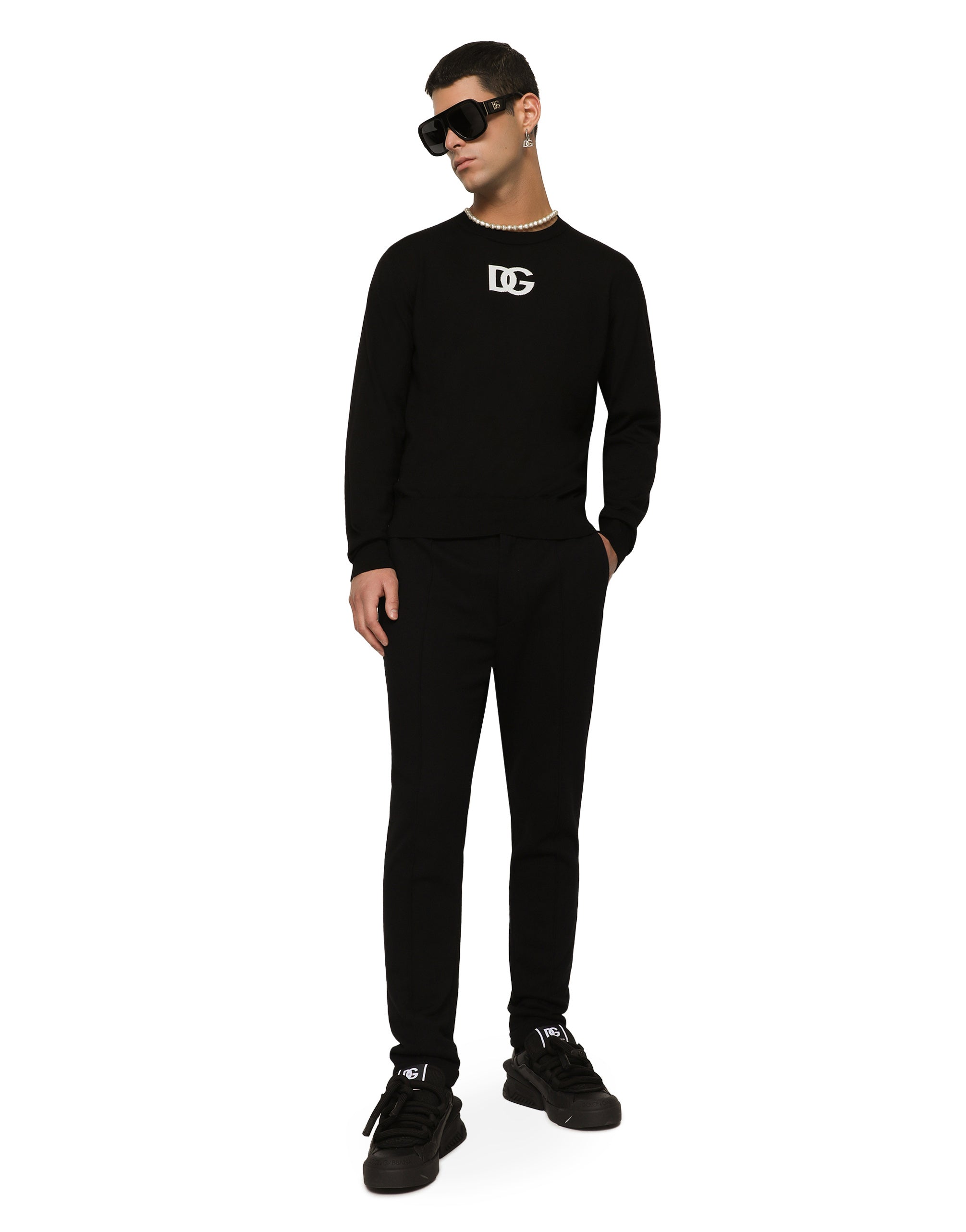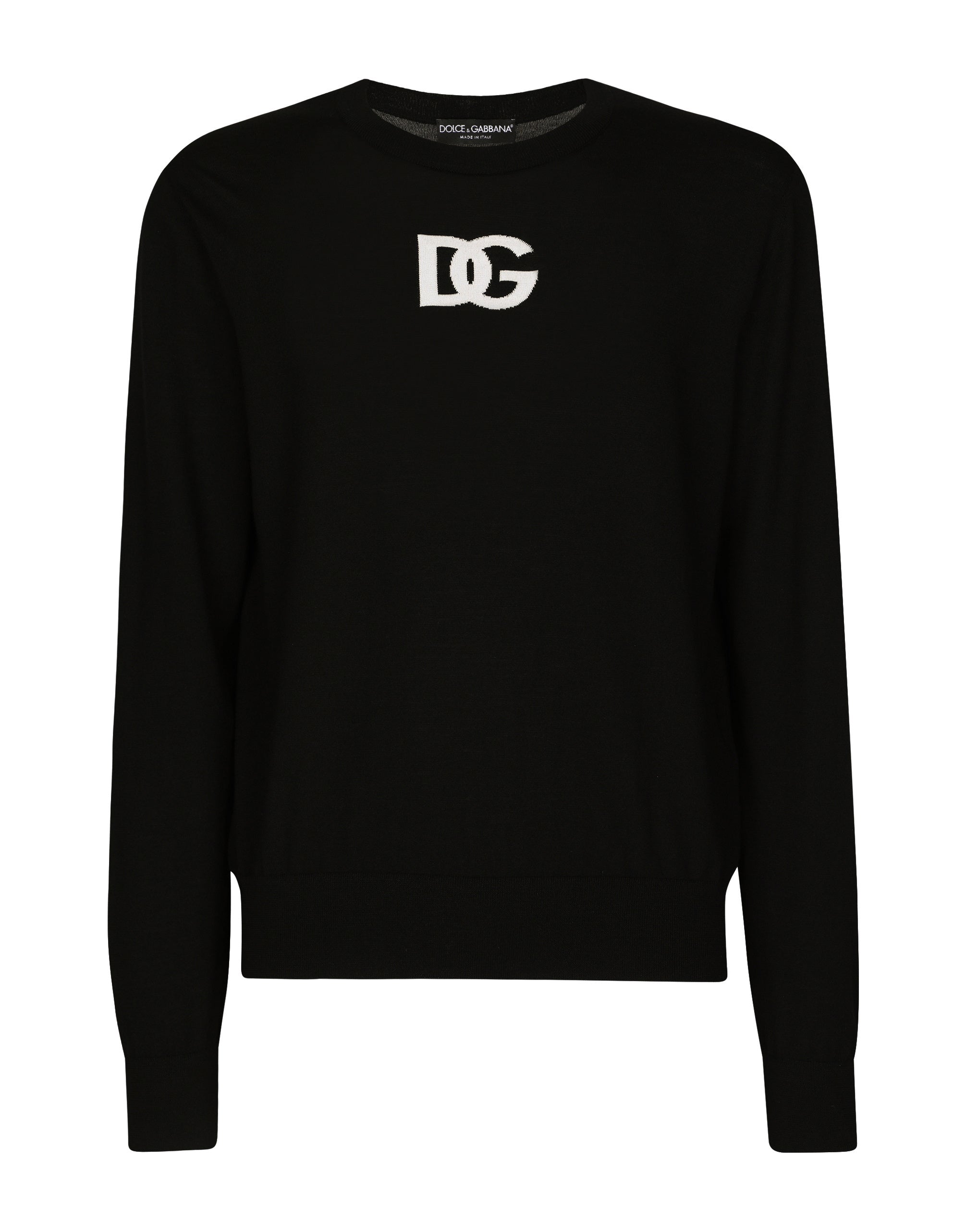 In the “Black Sicily” collection, the flawless and iconic Nero Sicilia black becomes Nero Urbano black. Paired with the Hawaiian prints and the DG Heart, all the featured looks flaunt and reveal new ways of pairing this color with a new current, innovative and utterly contemporary way. Round-neck virgin wool sweater with DG logo intarsia: • Regular fit • 18-gauge plain knit • The piece measures 68 cm from the shoulder seam on a size IT 48 • The model is 185 cm tall and wears a size IT 48 • Made in Italy