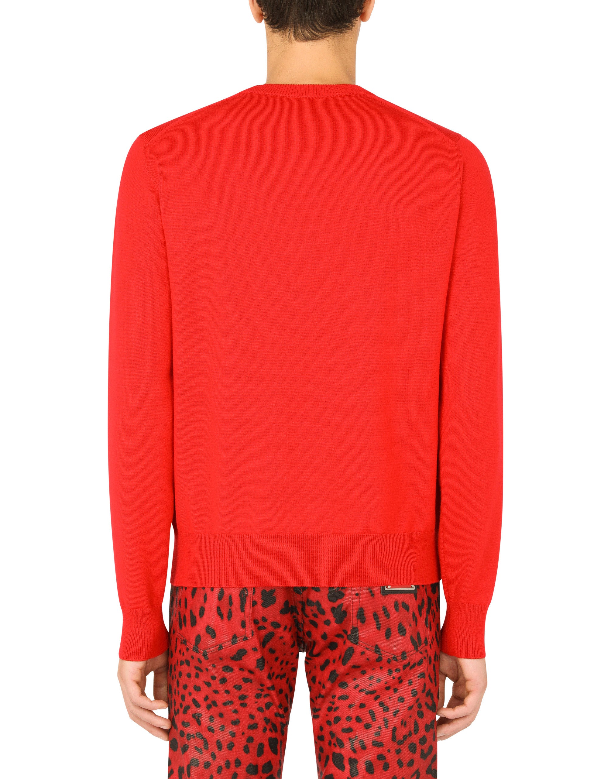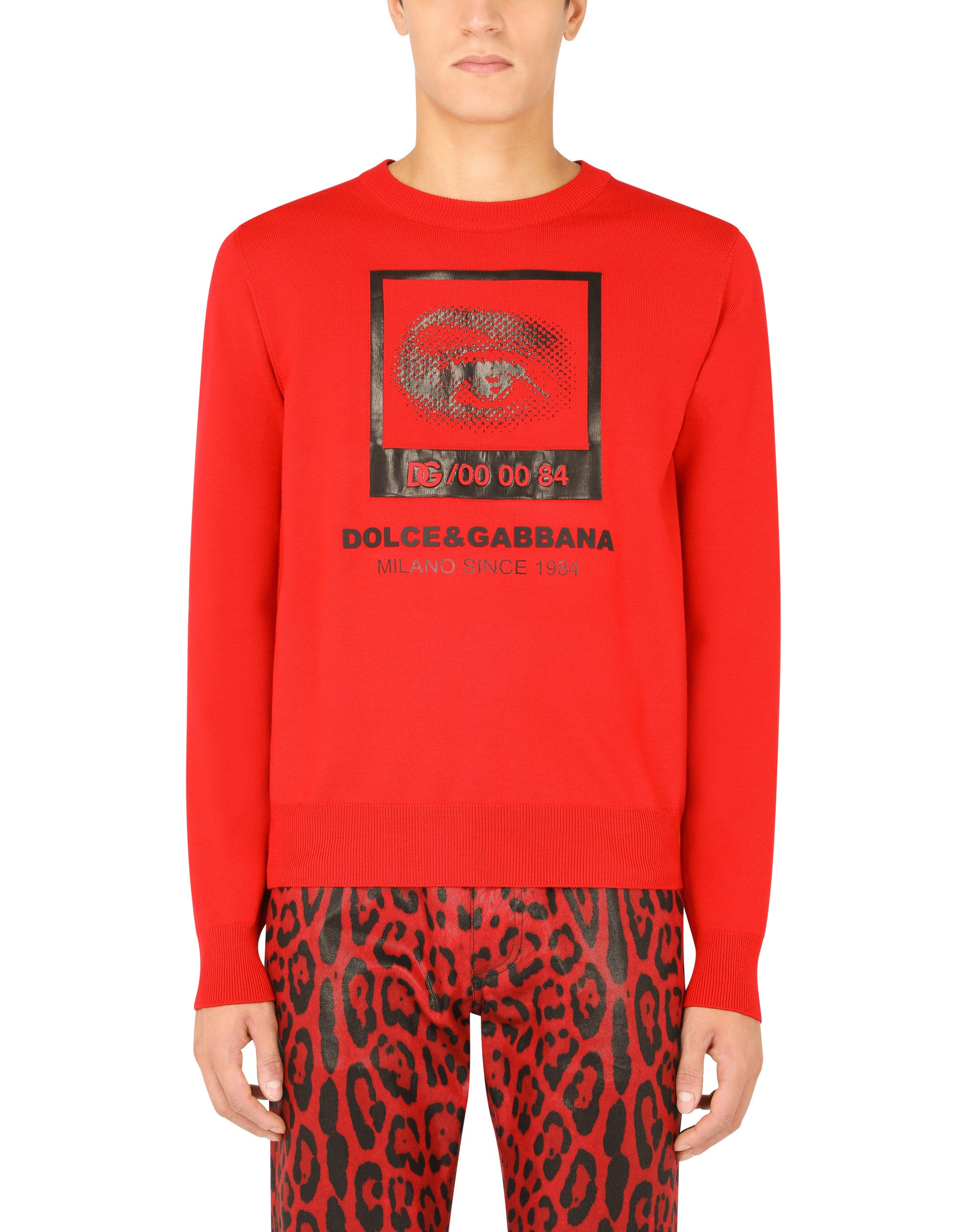 Round-neck virgin wool sweater with intarsia and print. • Regular fit • 14-gauge inlaid knit • The piece measures 67 cm - 26.4 inches from the rear collar seam on a size IT 48 • The model is 185 cm - 72.8 inches tall and wears a size IT 48 • Made in Italy