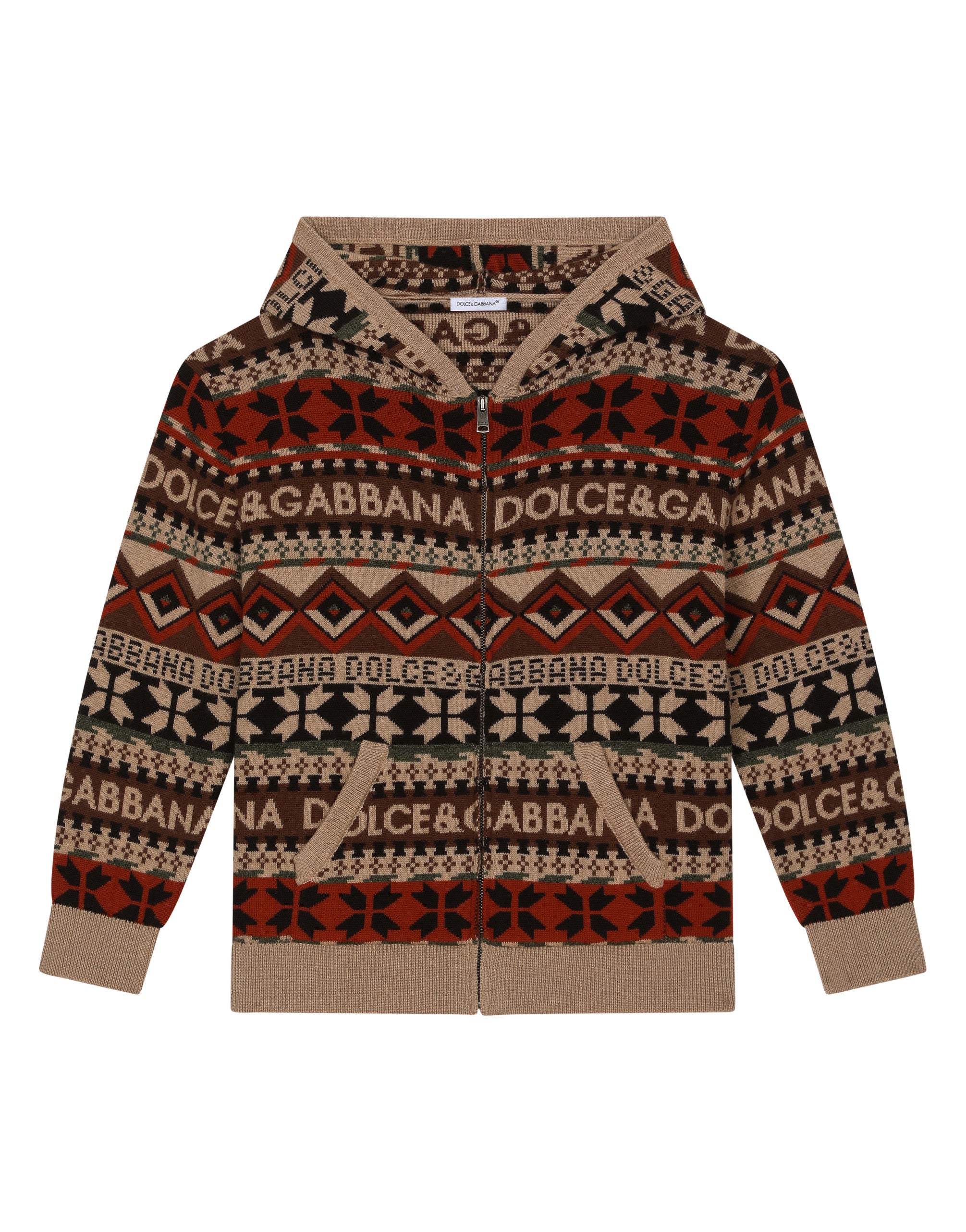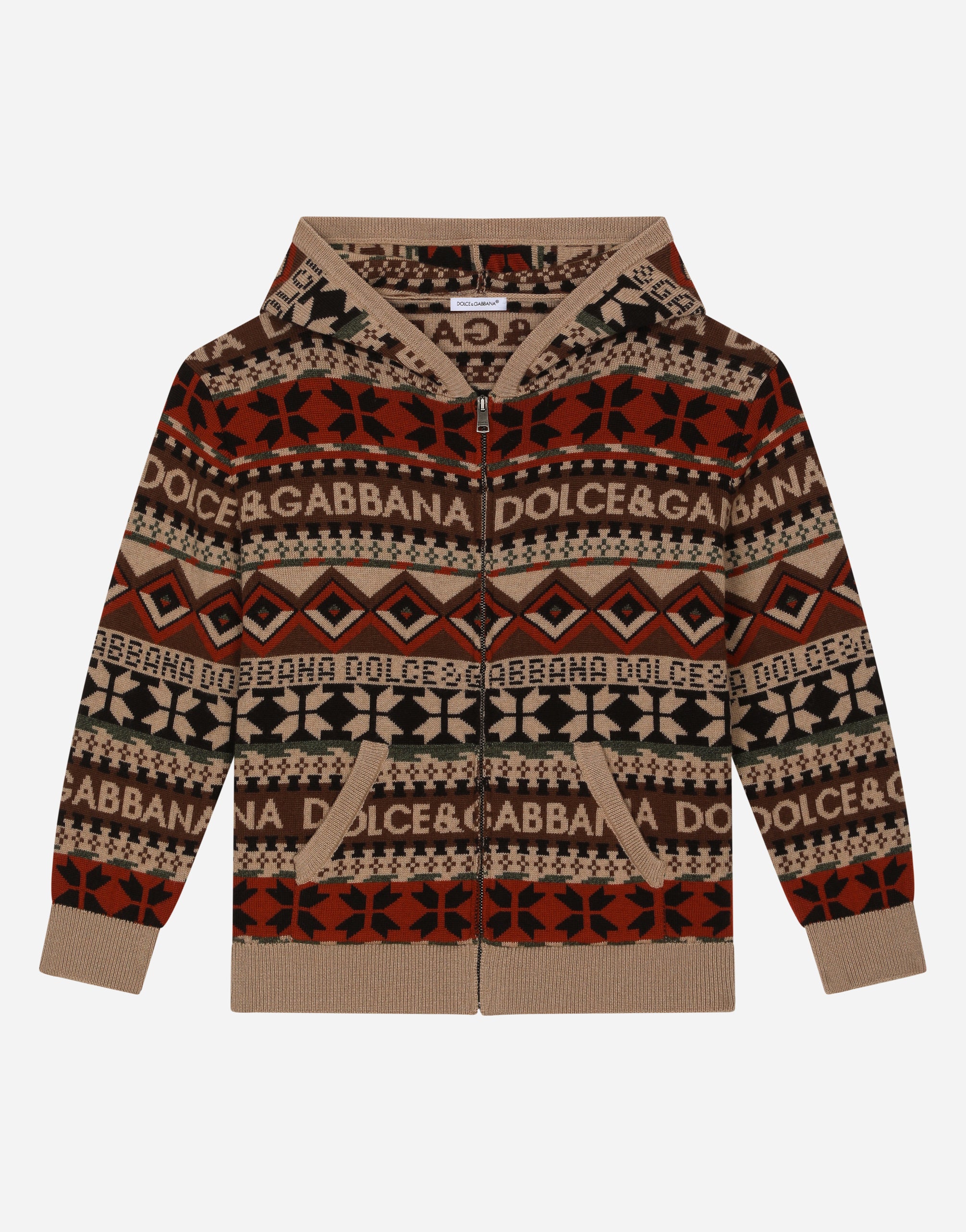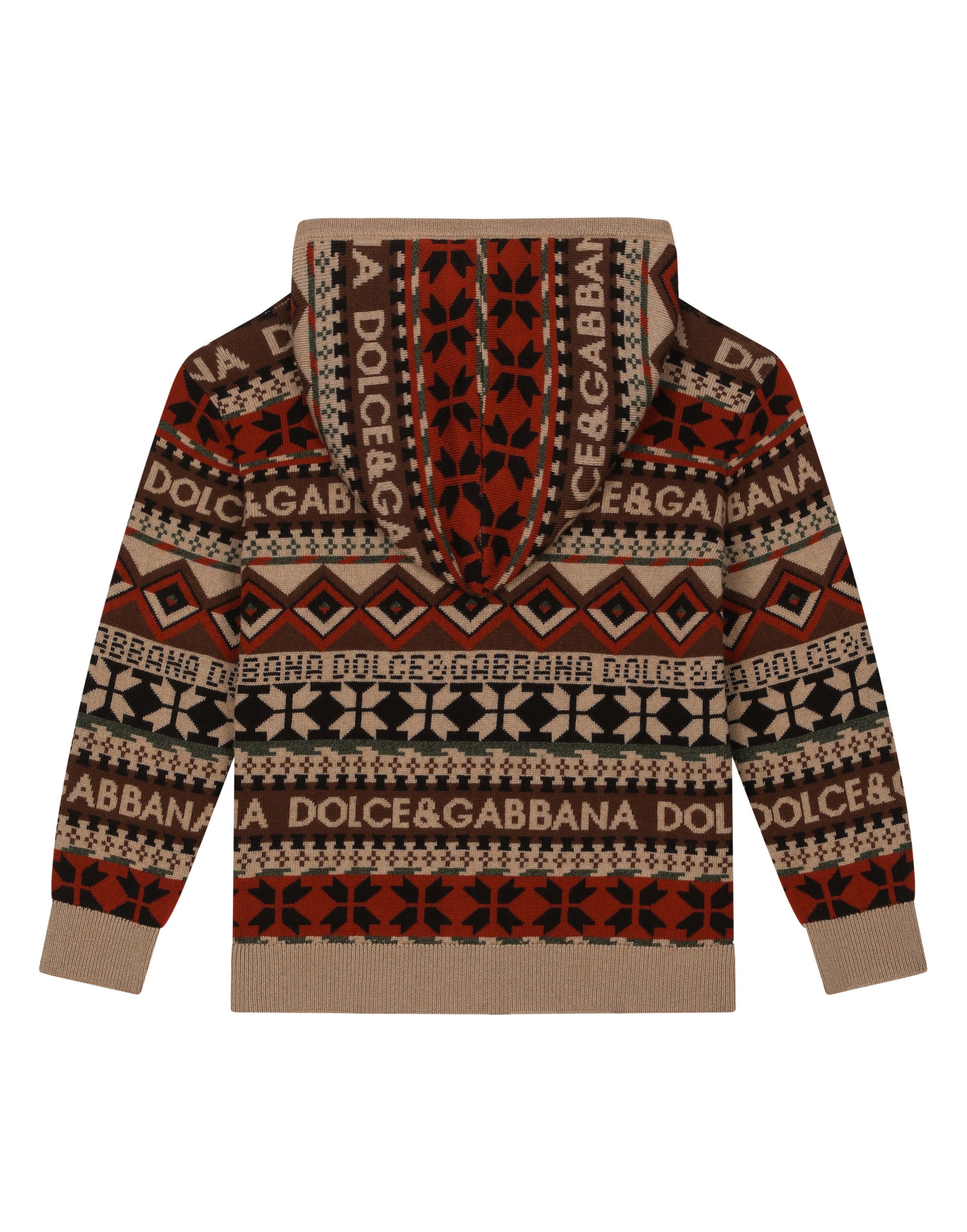 The girl’s Prateria Collection is inspired by the women’s 2001 New Hippy Collection, where the desert and meadows become bohemian and glamorous. Vaguely vintage/grunge looks come made up of volume and special pieces flaunt light printed and solid-color fabric details, smock stitching, corduroy, faux fur and a print distinguished by delicate and joyful multi-colored wildflowers for fun and ironic little girls. Zip-up jacquard knit cardigan with hood: • Multi-colored • Regular fit • 12-gauge knit • Neck with hood • Long sleeves • Pouch pockets • Stretch knit hem and cuffs • Front zipper fastening • Unlined • The item in the size 6 years measures 46.6 cm from the shoulder seam