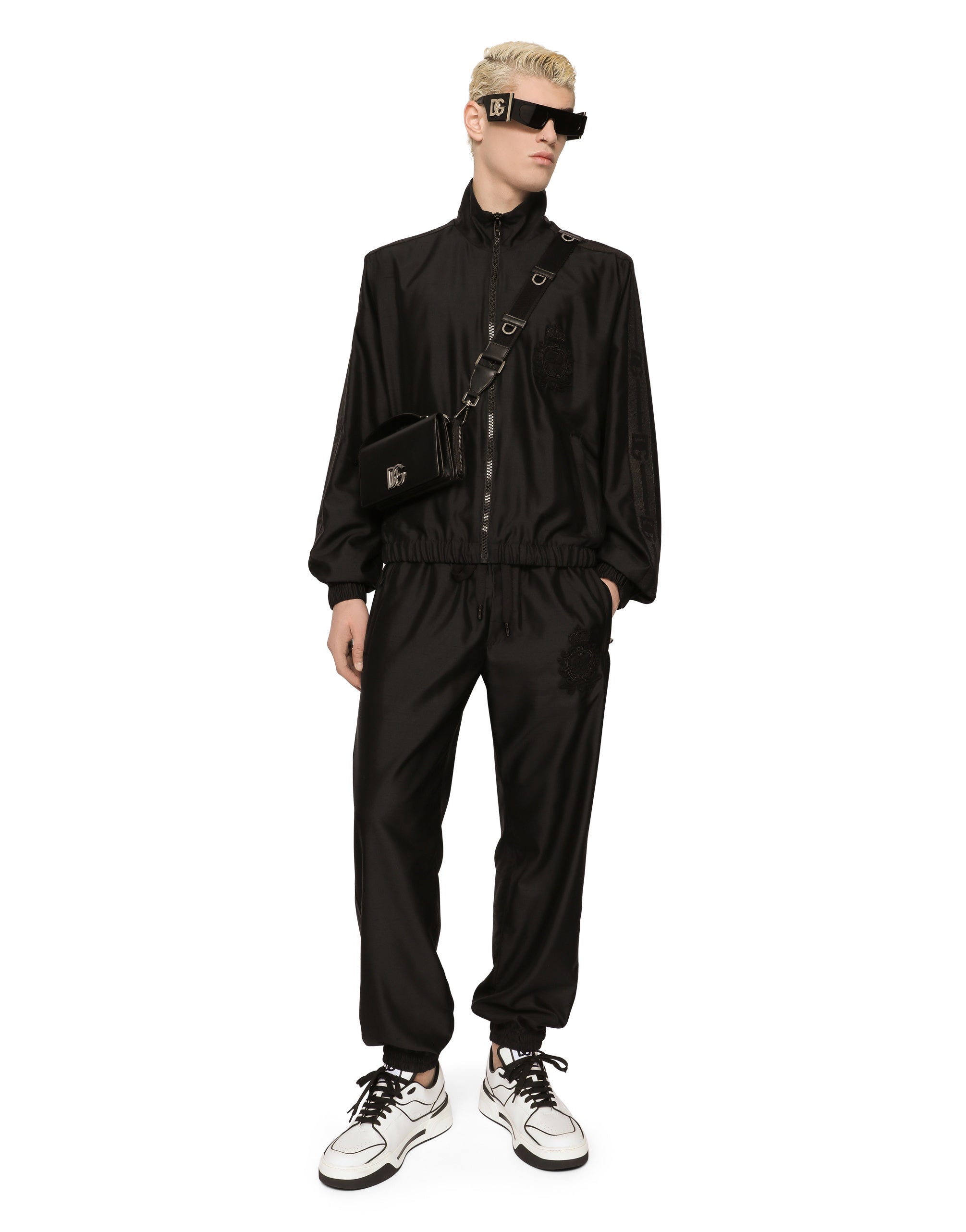 In the “Profondo Sud” Collection Dolce&Gabbana’s signature aesthetic has undergone a contemporary evolution through the use and reworking of iconic fabrics and details that are reinterpreted in terms of shapes and pairings. The color black comes paired with polka-dot, stripe and DG-logo prints. High-necked technical silk sweatshirt with DG heraldic embroidery and branded bands. • Regular fit • Zipper fastening • Stretch cuffs and hem • Lined • The piece measures 63 cm from the rear collar seam on a size IT 48 • The model is 185 cm tall and wears a size IT 48 • Made in Italy